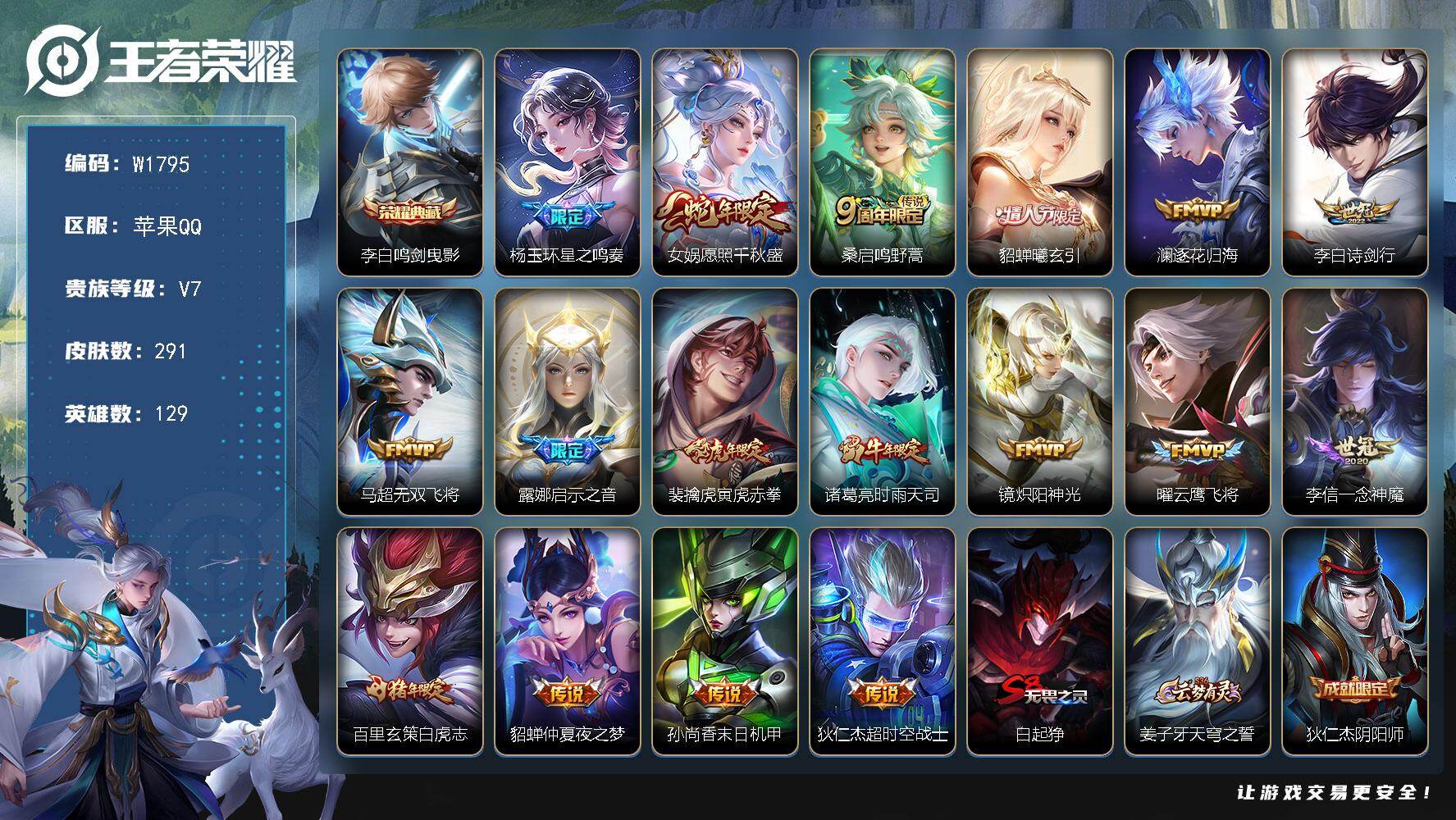 V7 皮肤254 英雄129 荣耀王者 荣耀典藏1 传说13 其他皮肤247