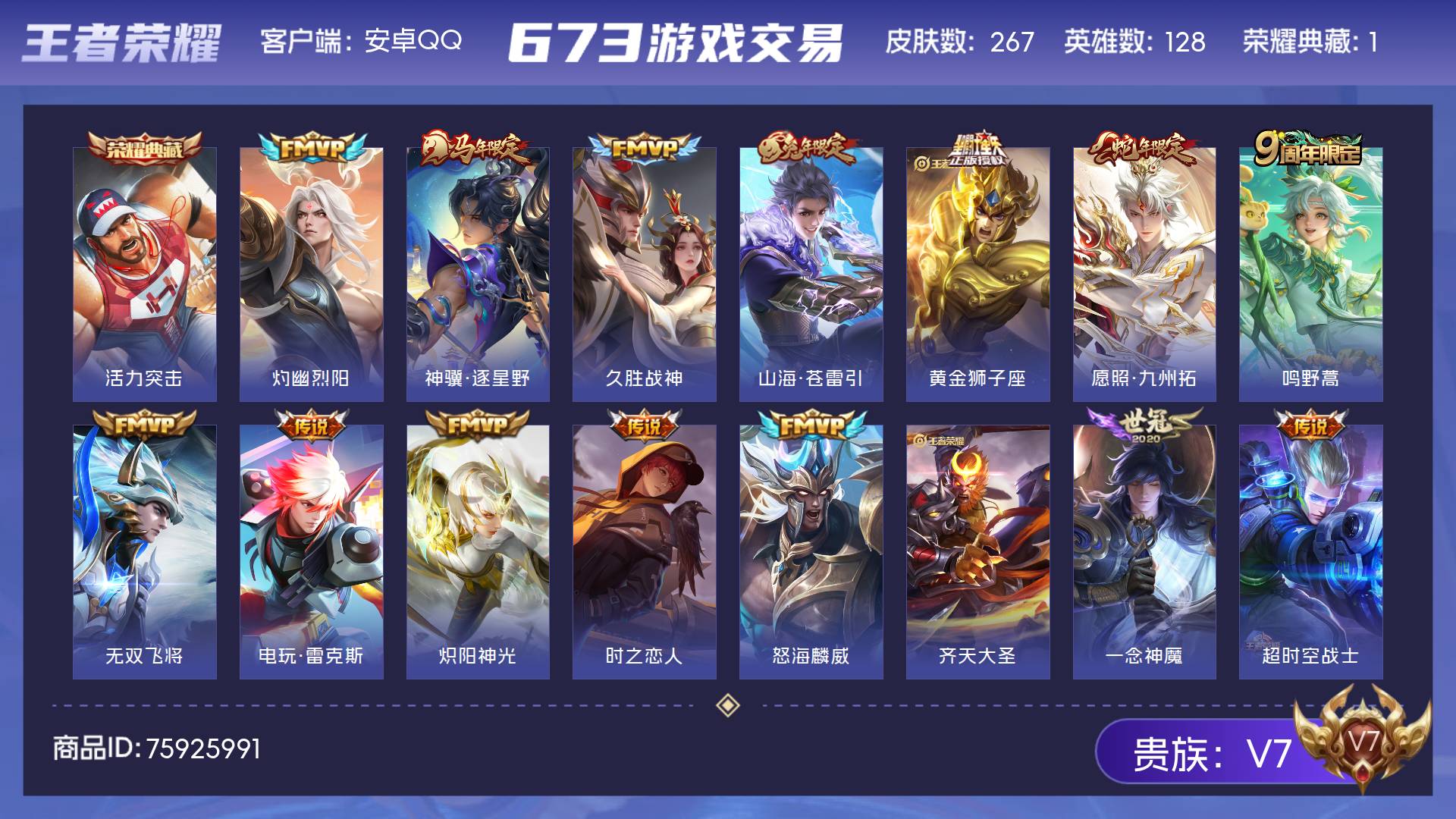 V7 皮肤267 英雄128 荣耀王者 荣耀典藏1 传说17 其他皮肤256