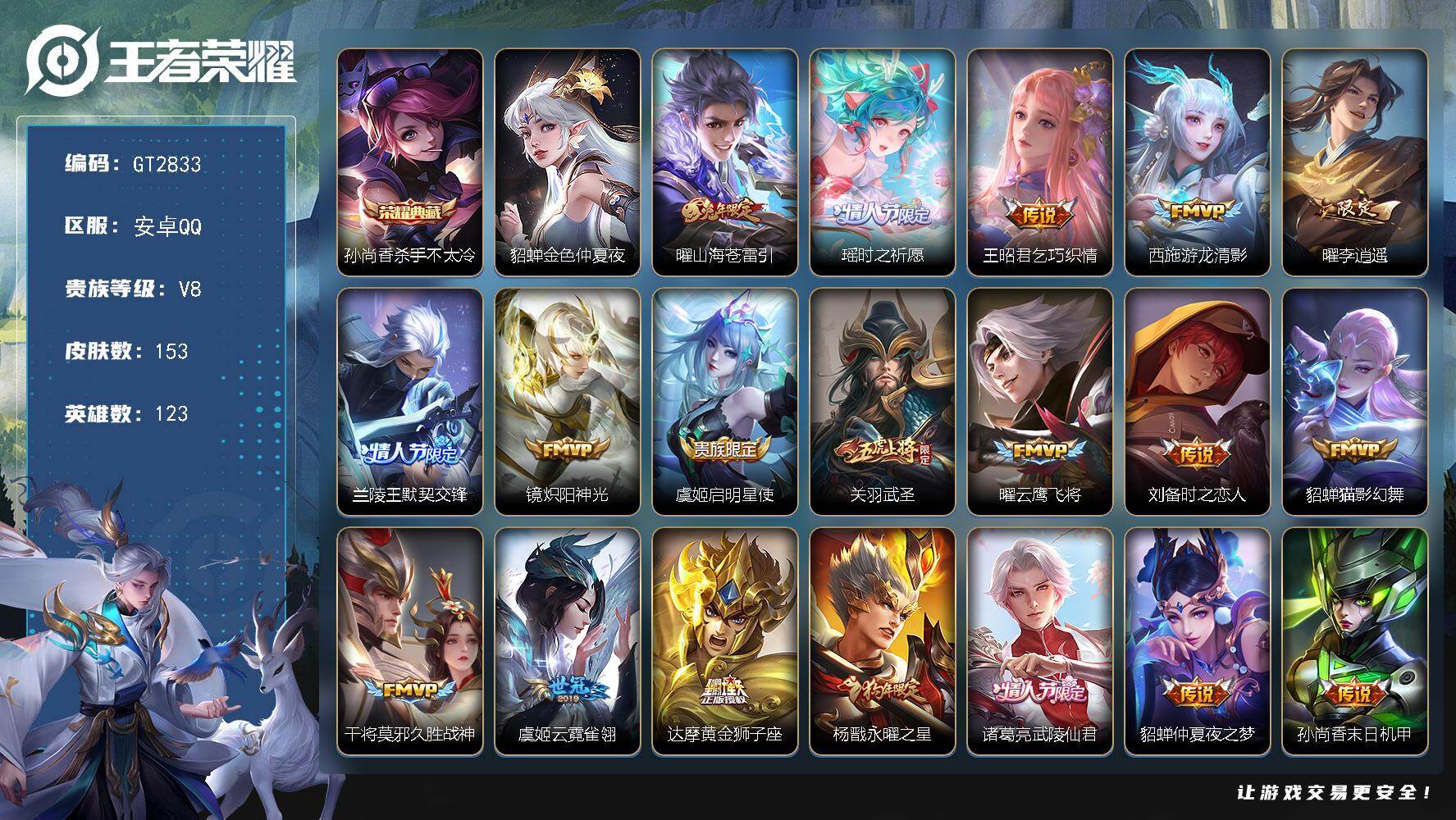 【mwz193】安卓Q-V5-至尊星耀V段位-126英雄-161皮肤-1典藏皮