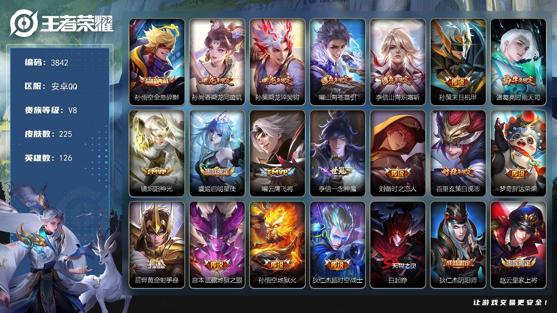 安卓Q-V4-至尊星耀II段位-126英雄-225皮肤-1典藏皮肤-17传说-