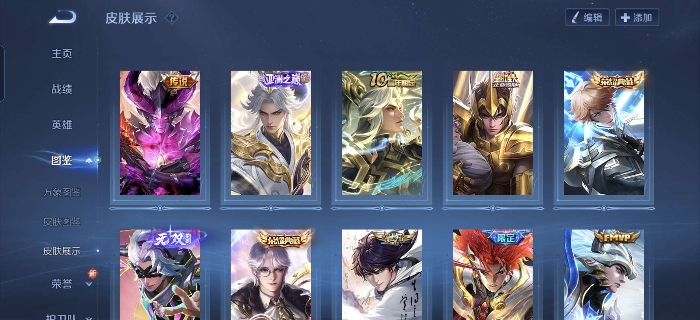 V6 皮肤217 英雄129 永恒钻石 荣耀典藏1 星传说1 传说10 其他皮肤213