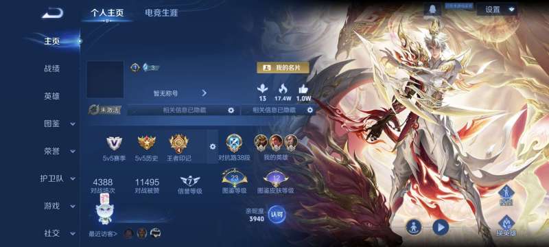 贵族等级: V7 英雄数: 126 皮肤数: 243 荣耀水晶: 全息碎影 星