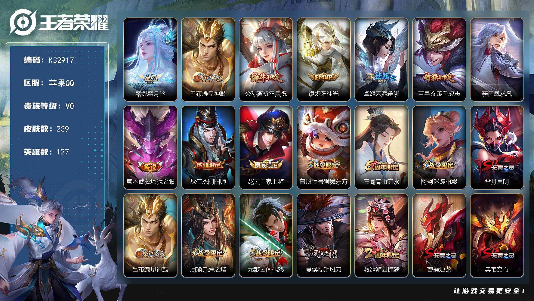可二次 V7 贵族积分39153 安卓QQ/142皮肤/111英雄