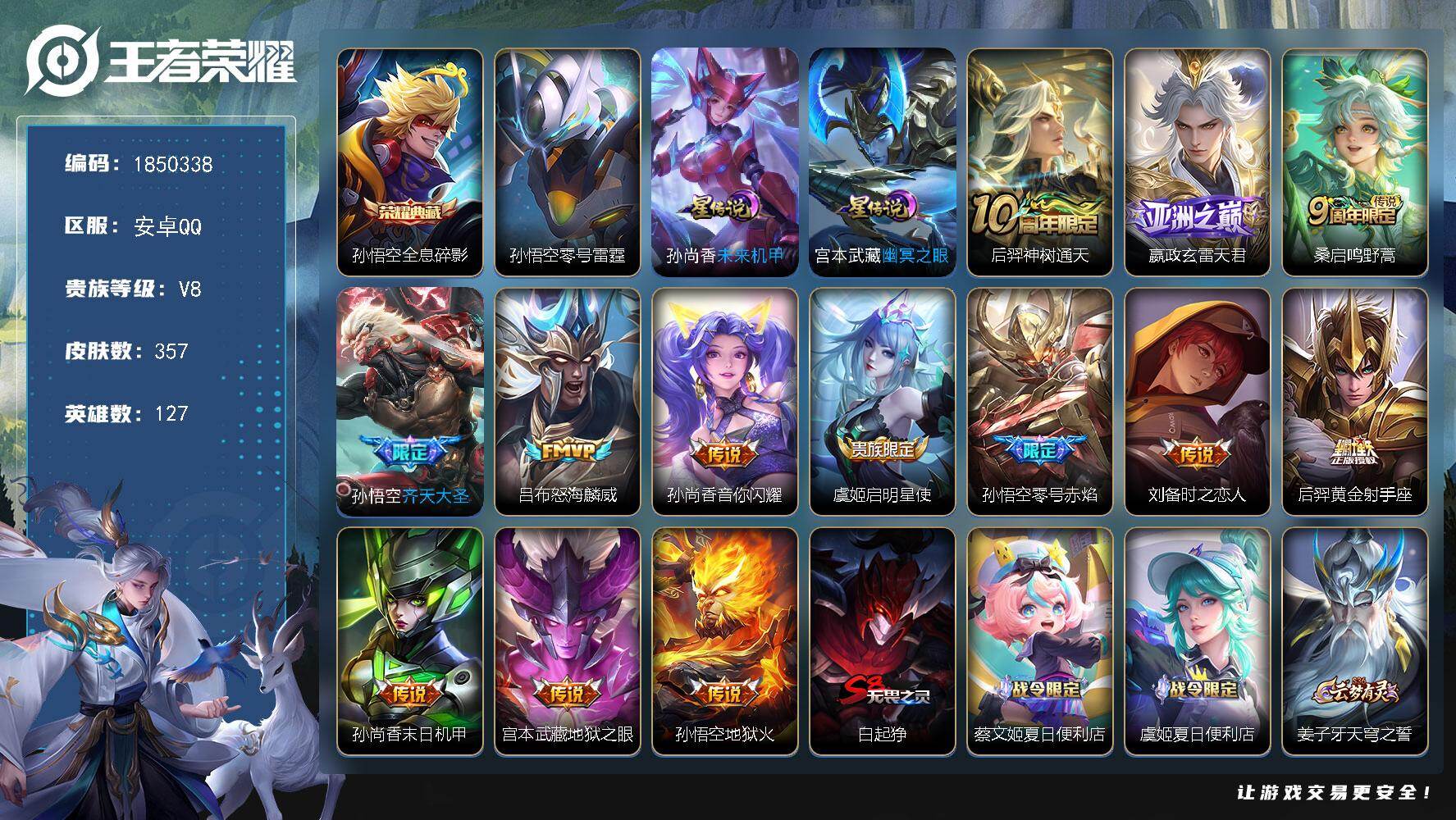 安卓Q-V7-最强王者段位-128英雄-343皮肤-1典藏英雄-14传说-97