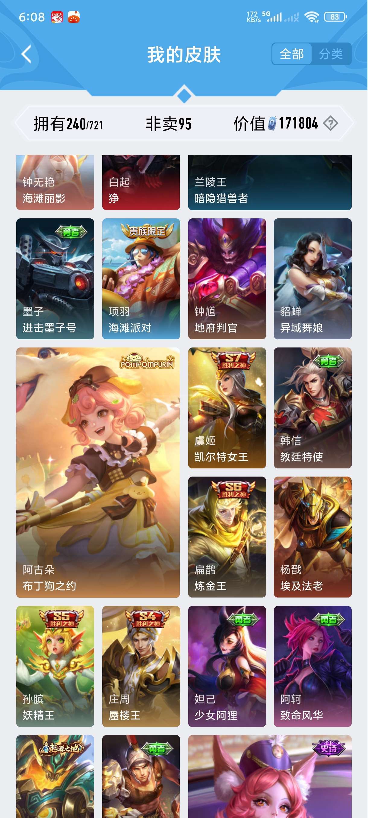 V8 皮肤184 英雄129 最强王者 荣耀典藏2 珍品传说2 传说15 其他皮肤172