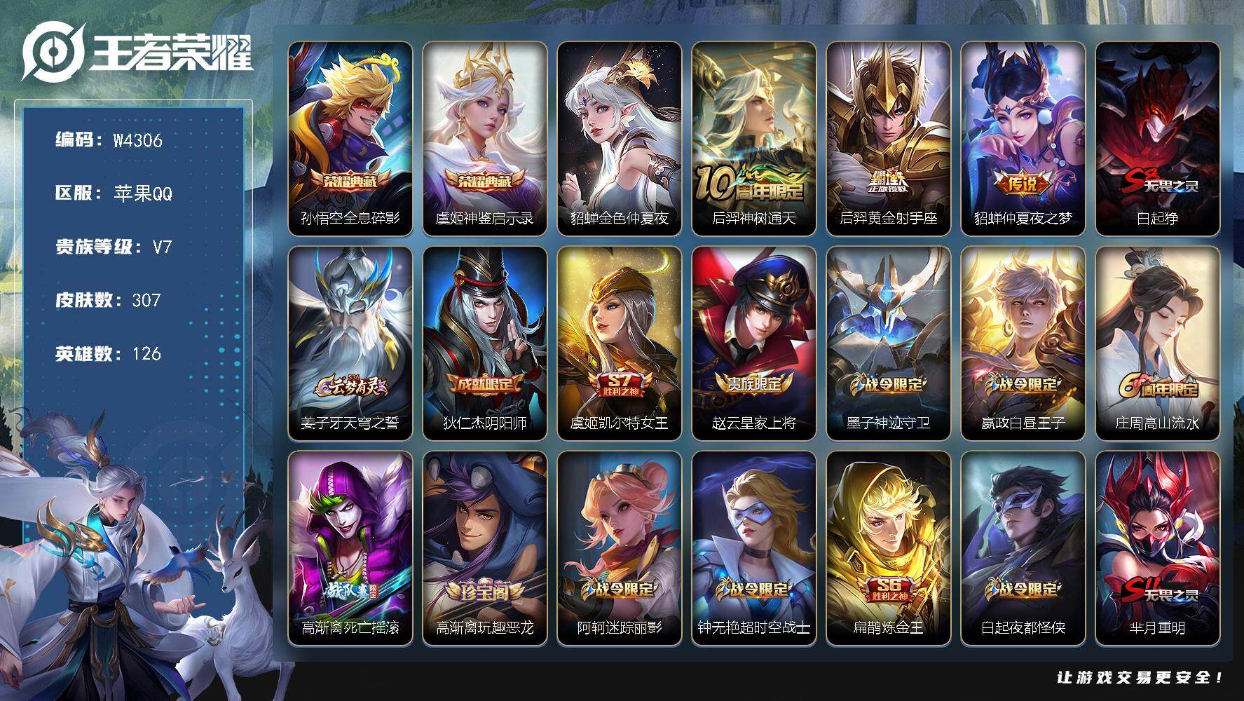 苹果QQ-2典藏-3传说-307皮肤-126英雄-荣耀王者