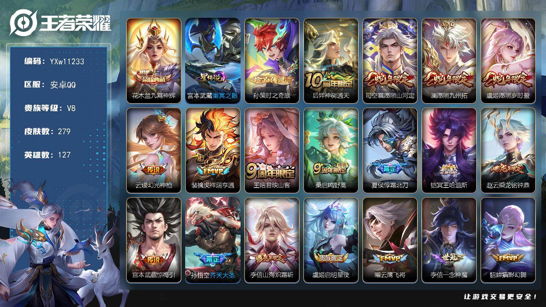 安卓QQ 皮肤300 英雄126 典藏2 传说11 其他皮肤123 非凡王者-