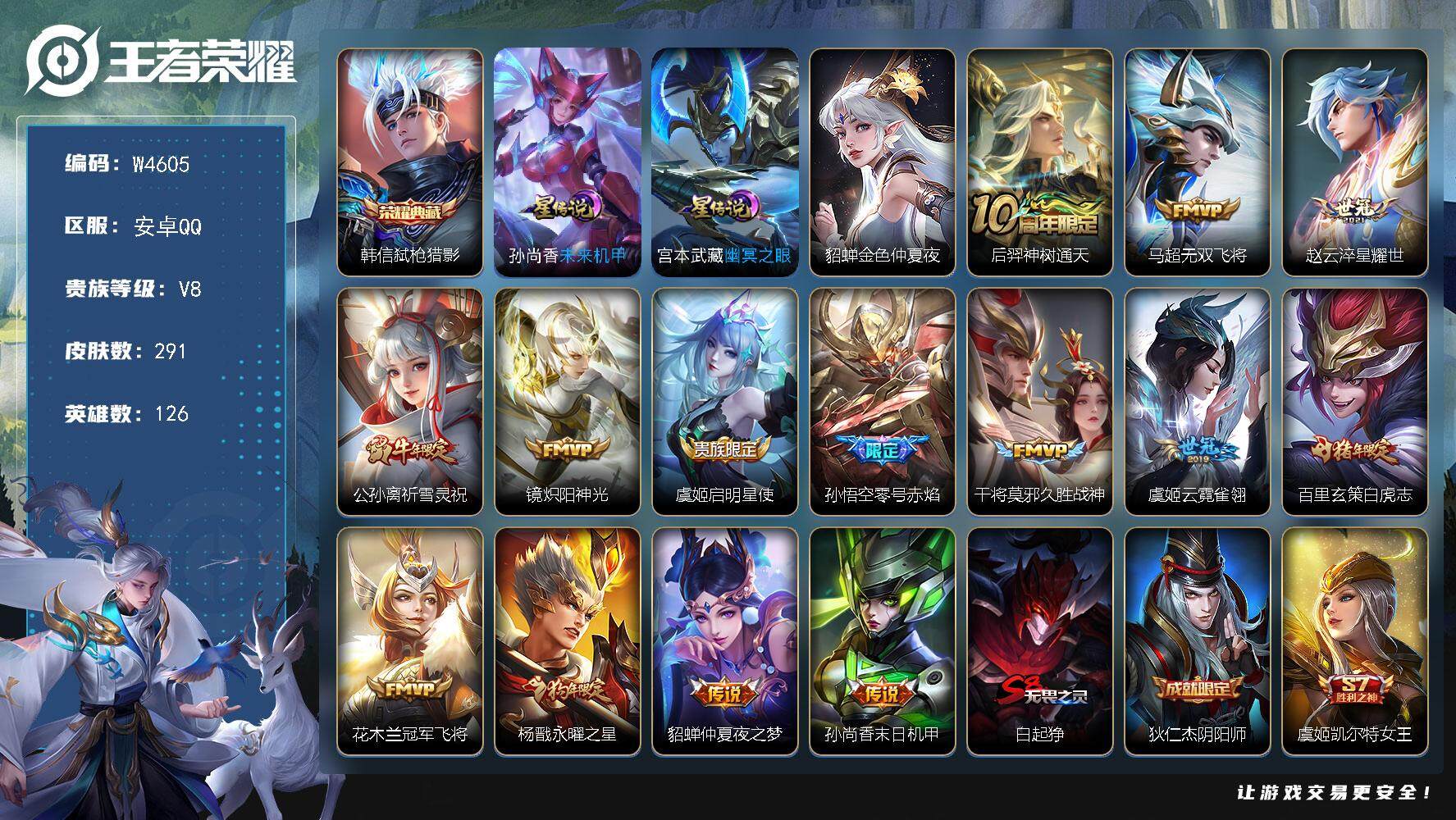 【W3961】安卓微信-可二次-贵7-126英雄-134皮肤-2典藏-5传说-
