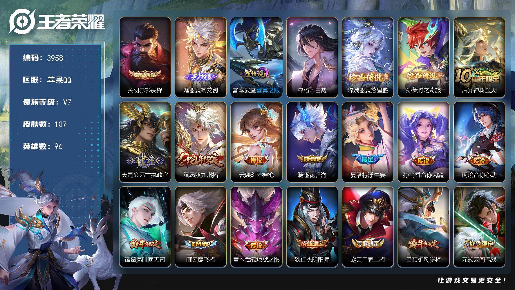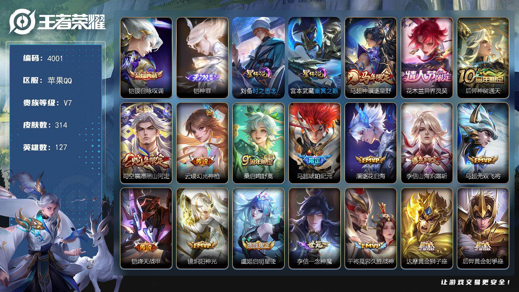 V7 皮肤133 英雄117 至尊星耀 荣耀典藏1 无双皮肤2 传说6 其他皮肤129