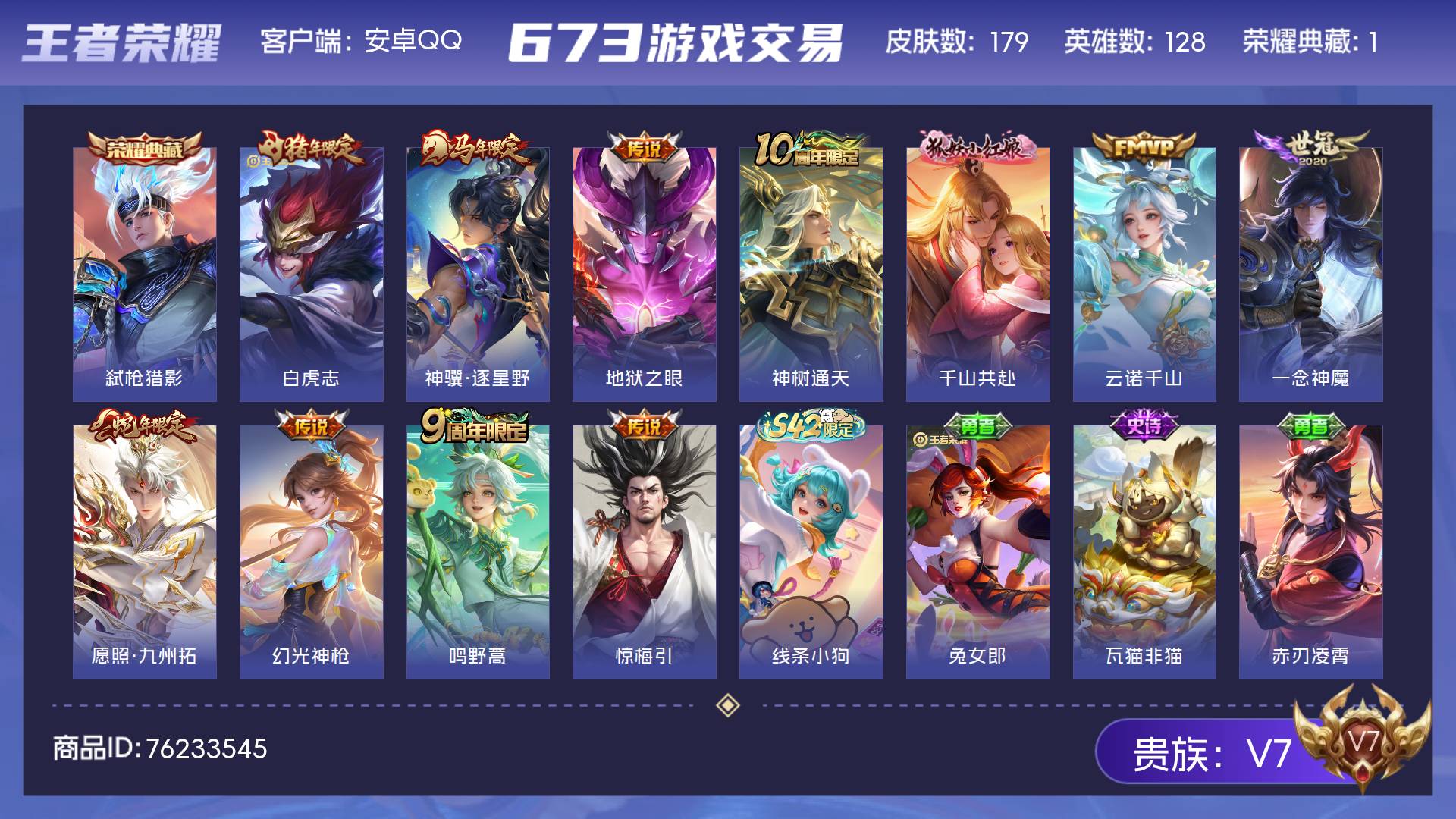 V7 皮肤179 英雄128 荣耀王者 荣耀典藏1 星传说1 传说11