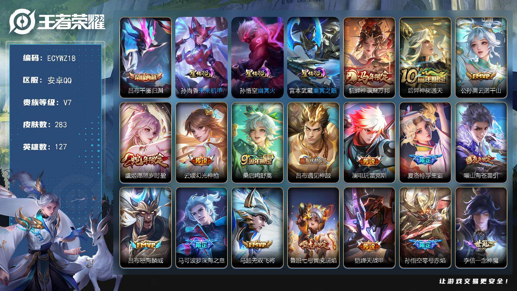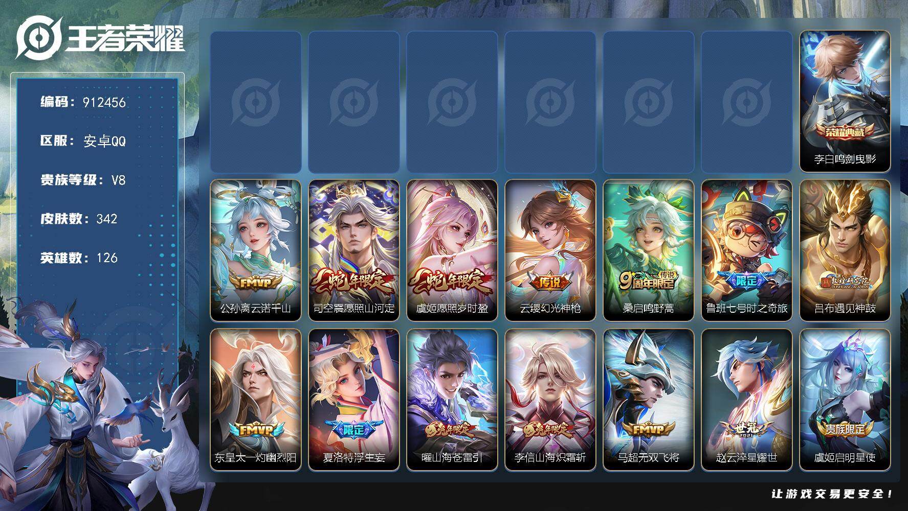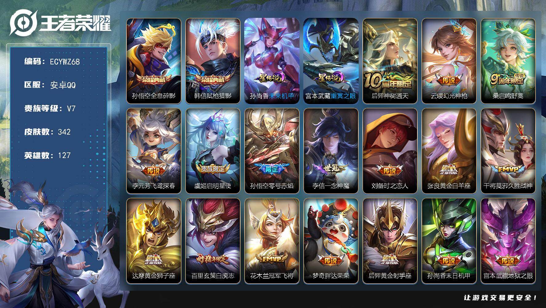 安卓Q-V2-至尊星耀III段位-126英雄-342皮肤-1典藏皮肤-15传说-