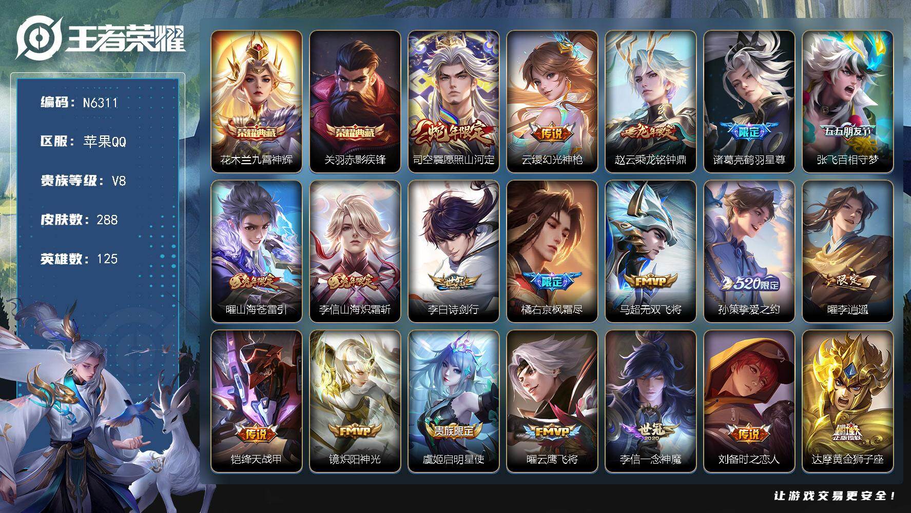 V6-至尊星耀II段位-125英雄-288皮肤-2典藏皮肤-20传说