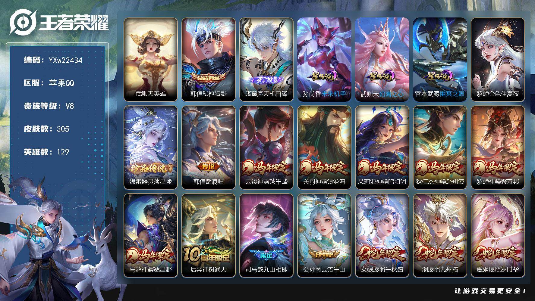 128英雄-326皮肤-苹果QQ/账号亮点/发育路41段/