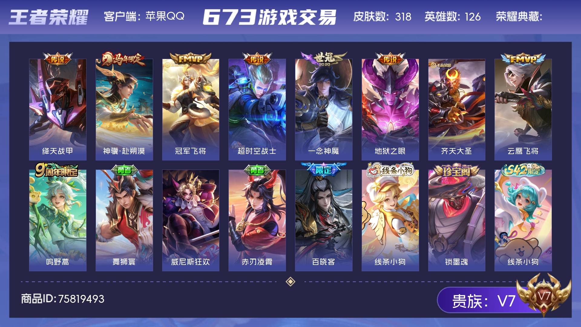 V7 皮肤318 英雄126 绝世王者 星传说2 传说9 其他皮肤315