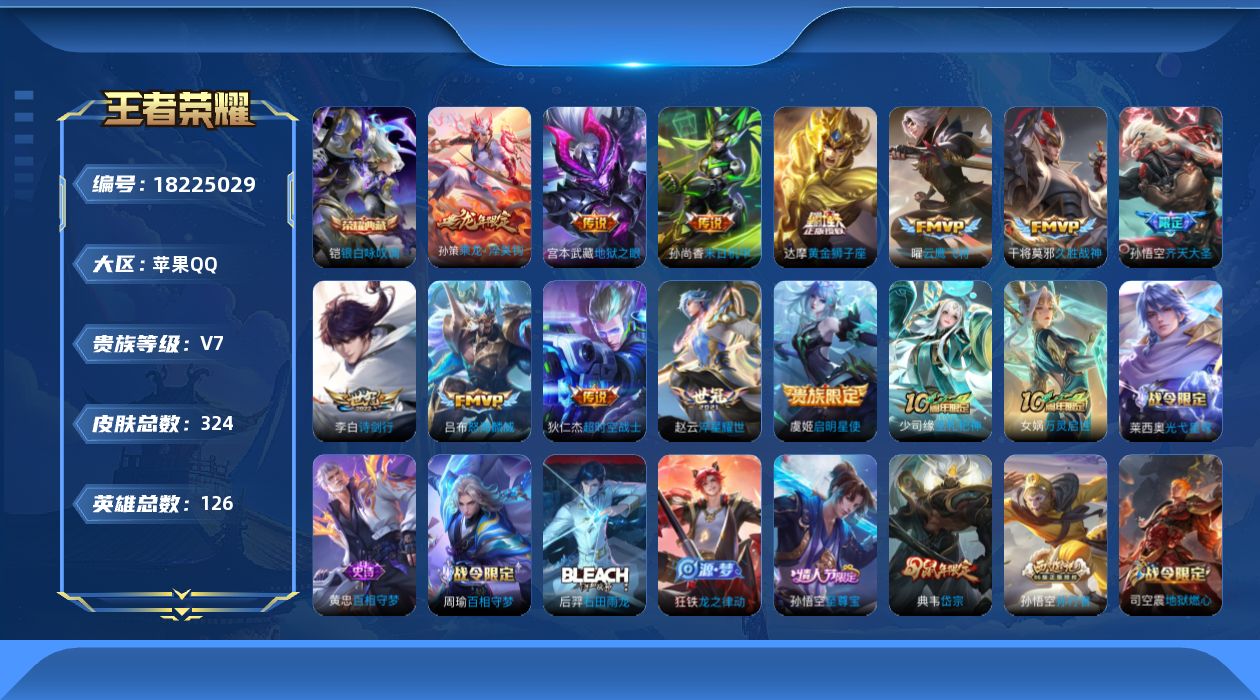 苹果Q-V7-至尊星耀IV段位-126英雄-324皮肤-1典