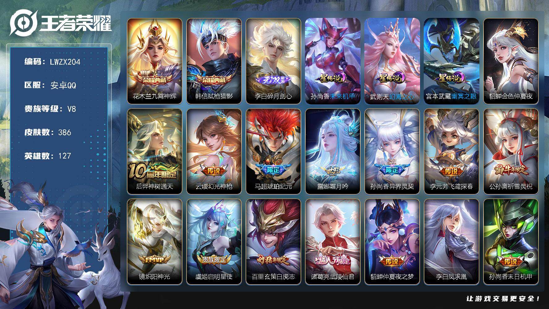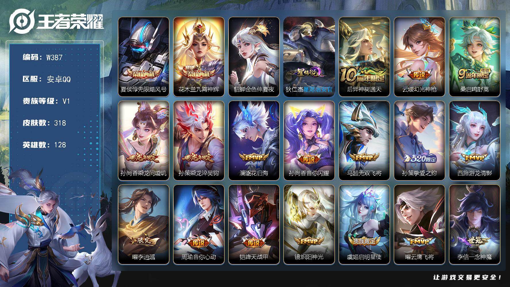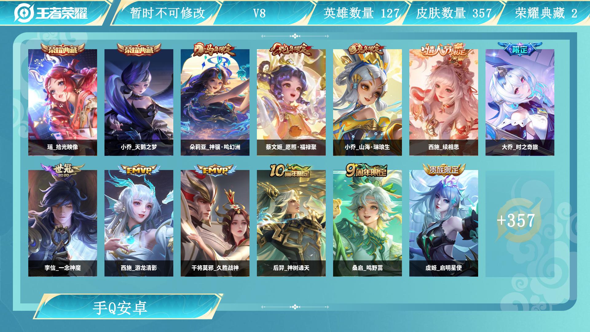 【特价出售/店主推荐】安卓Q-V8-最强王者段位-127英雄-386皮肤-2典