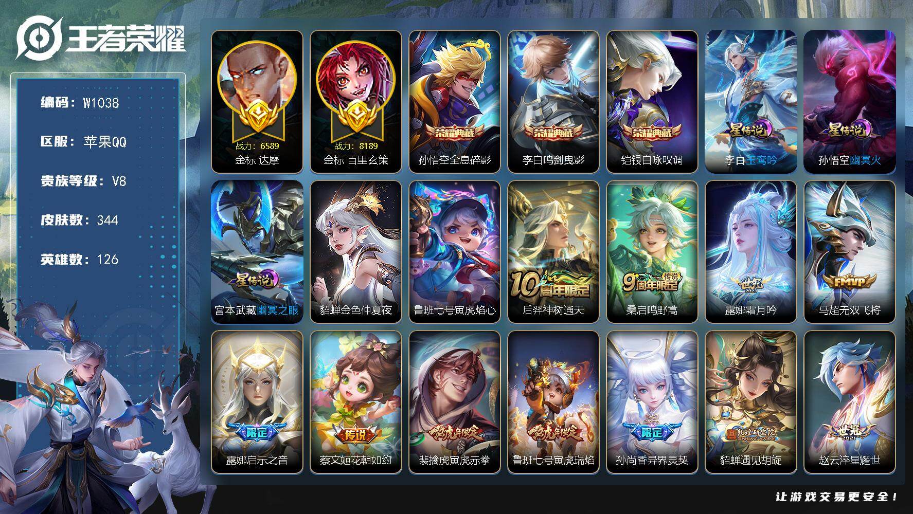 iOS/金标百里玄策/金标达摩/露娜全皮/344皮肤3典藏皮肤24传说【荣耀