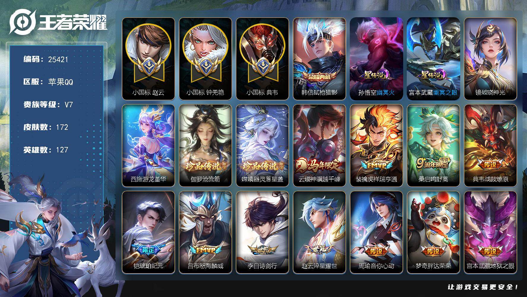 @76132 可二次 V7 贵族积分48710 安卓QQ/203皮肤/128英雄