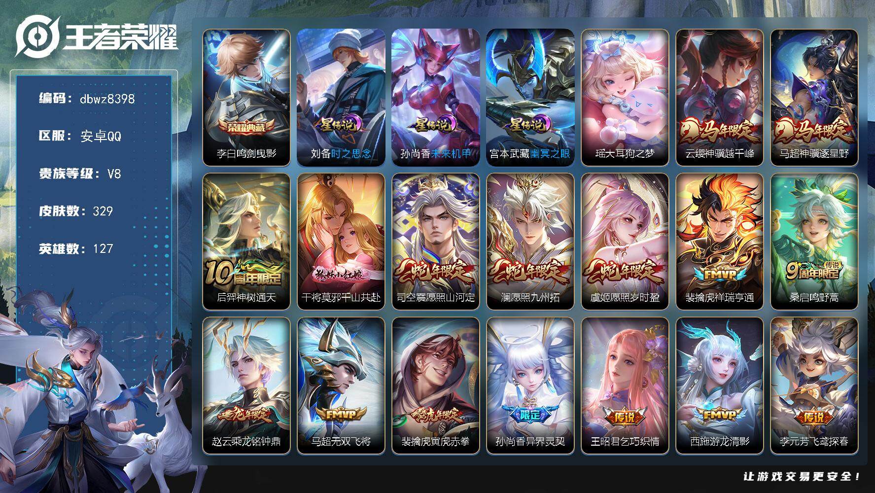 V6-最强王者段位-126英雄-169皮肤-2典藏皮肤-1无双-1珍品传