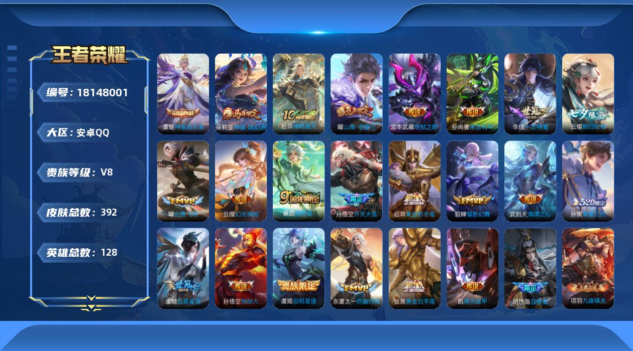 安卓Q-V8-最强王者段位-128英雄-392皮肤-1典藏皮