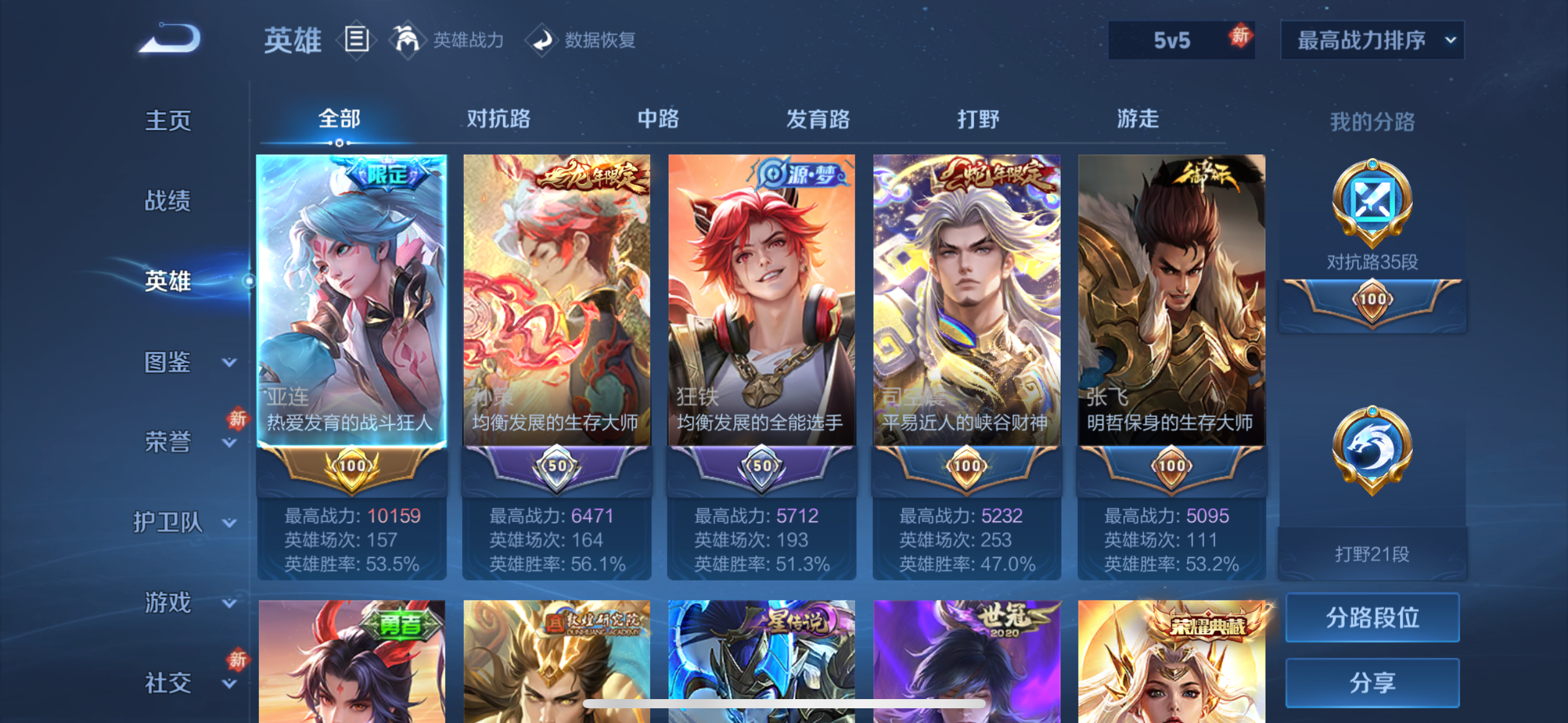 V8-至尊星耀III段位-127英雄-225皮肤-1典藏皮肤-2珍品传说