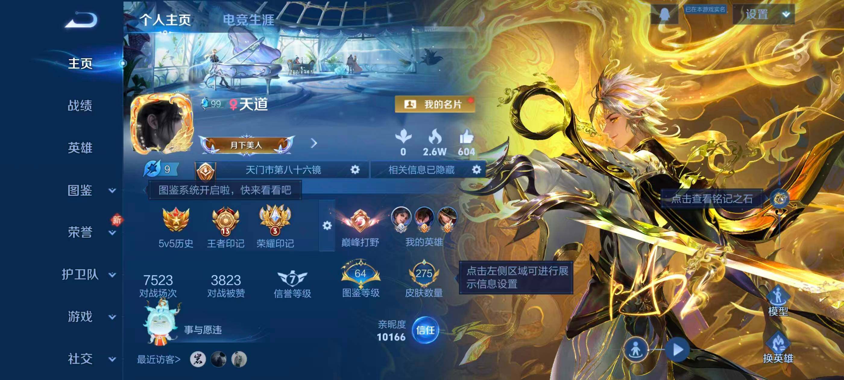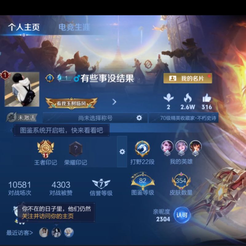 安卓QQ/荣耀王者/181皮肤/116英雄/0典藏/0珍品无双/4无双/1珍品传说/16传说/59史