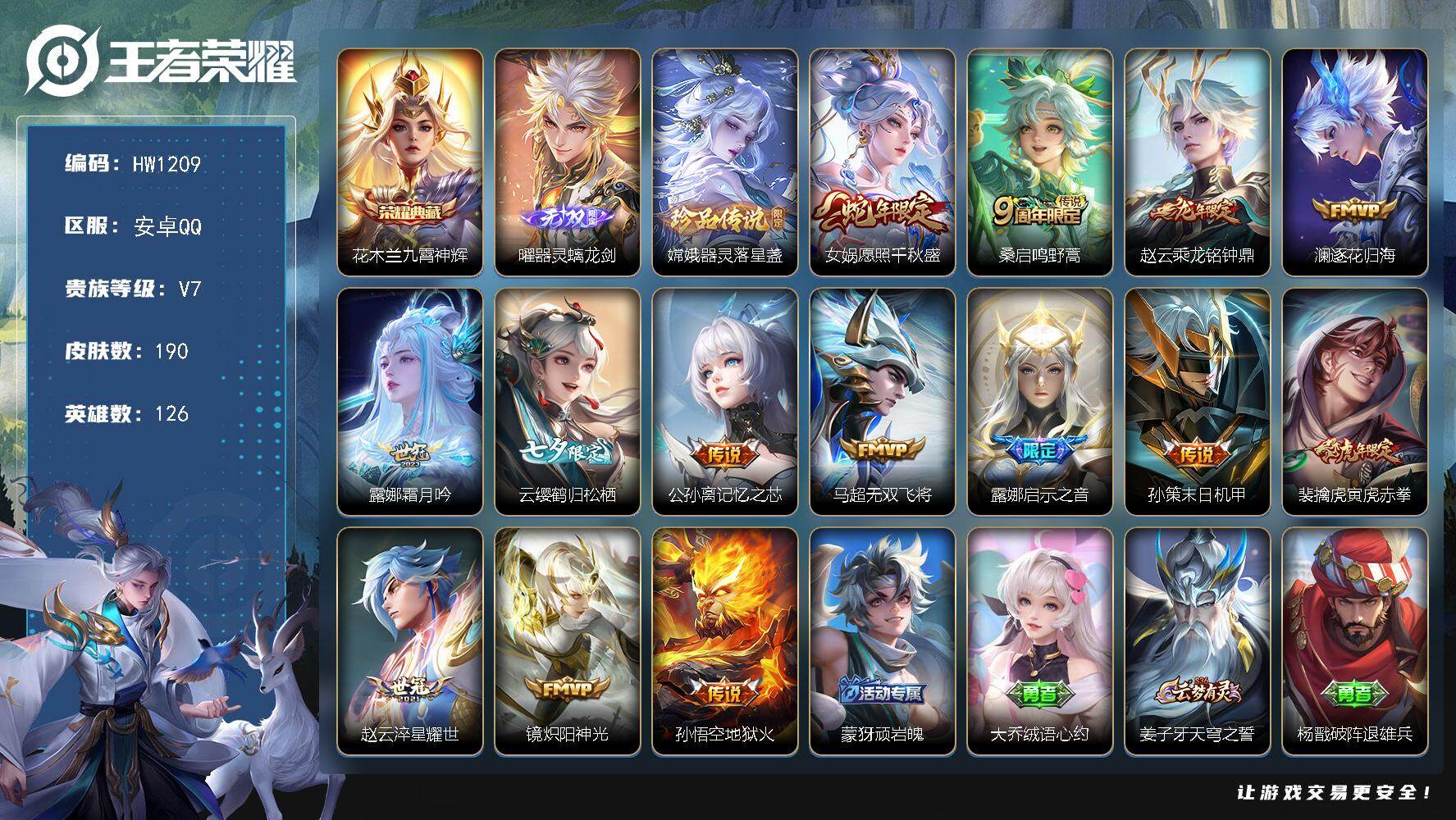 127英雄-265皮肤-安卓QQ/可二次/v8/至尊星耀/