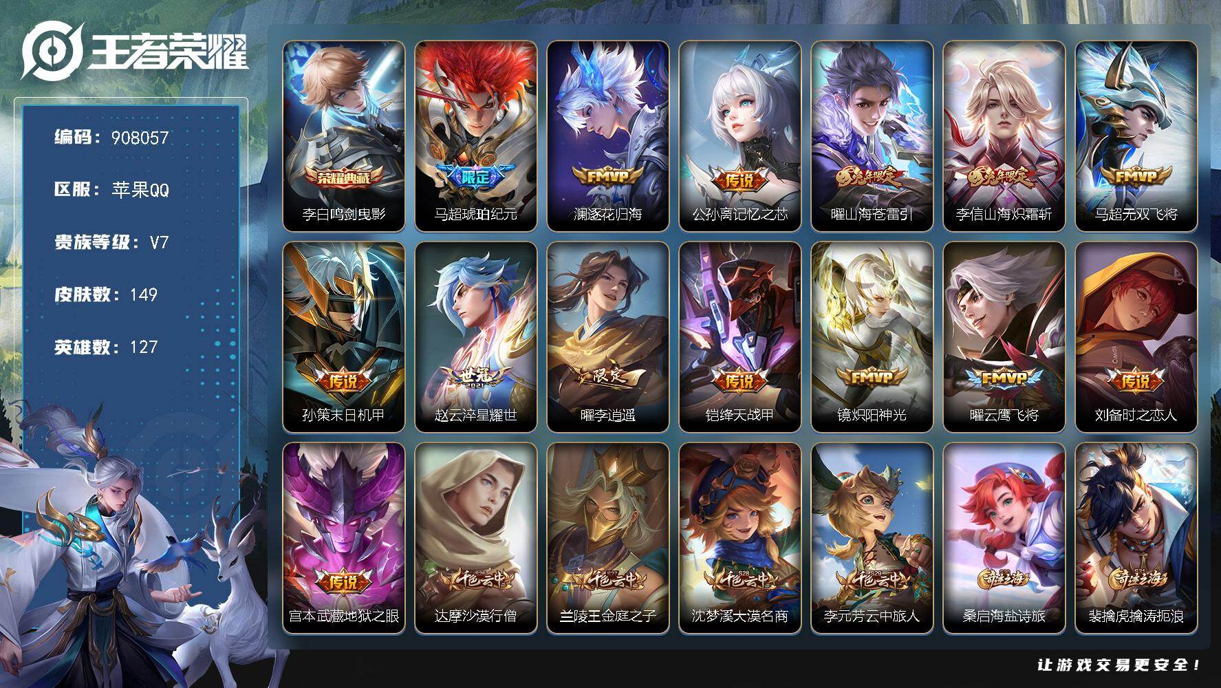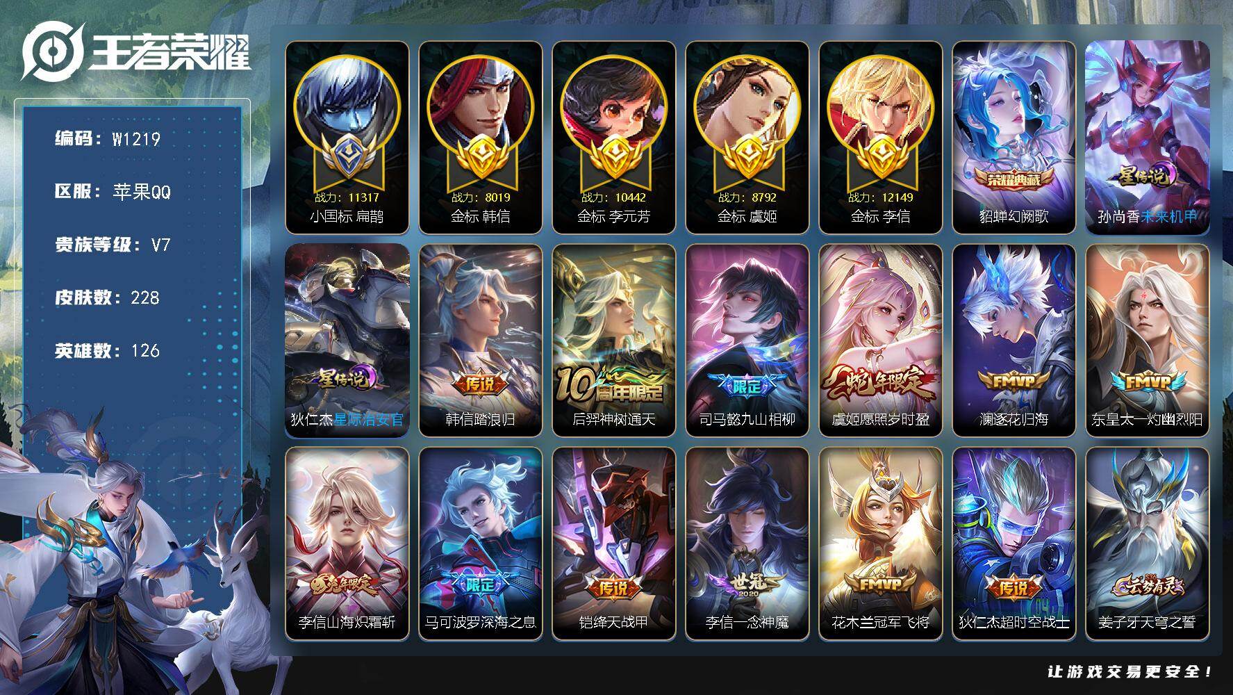 社交限制介意勿拍! -V7-最强王者段位-127英雄-255皮肤-1典藏皮
