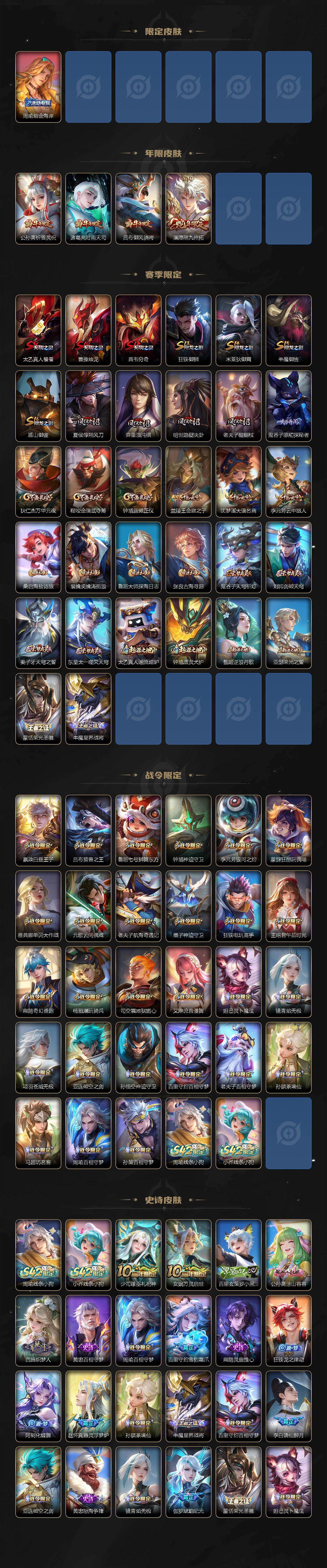 皮肤315 英雄124 至尊星耀 荣耀典藏2 无双皮肤1 传说24 其他皮肤122-