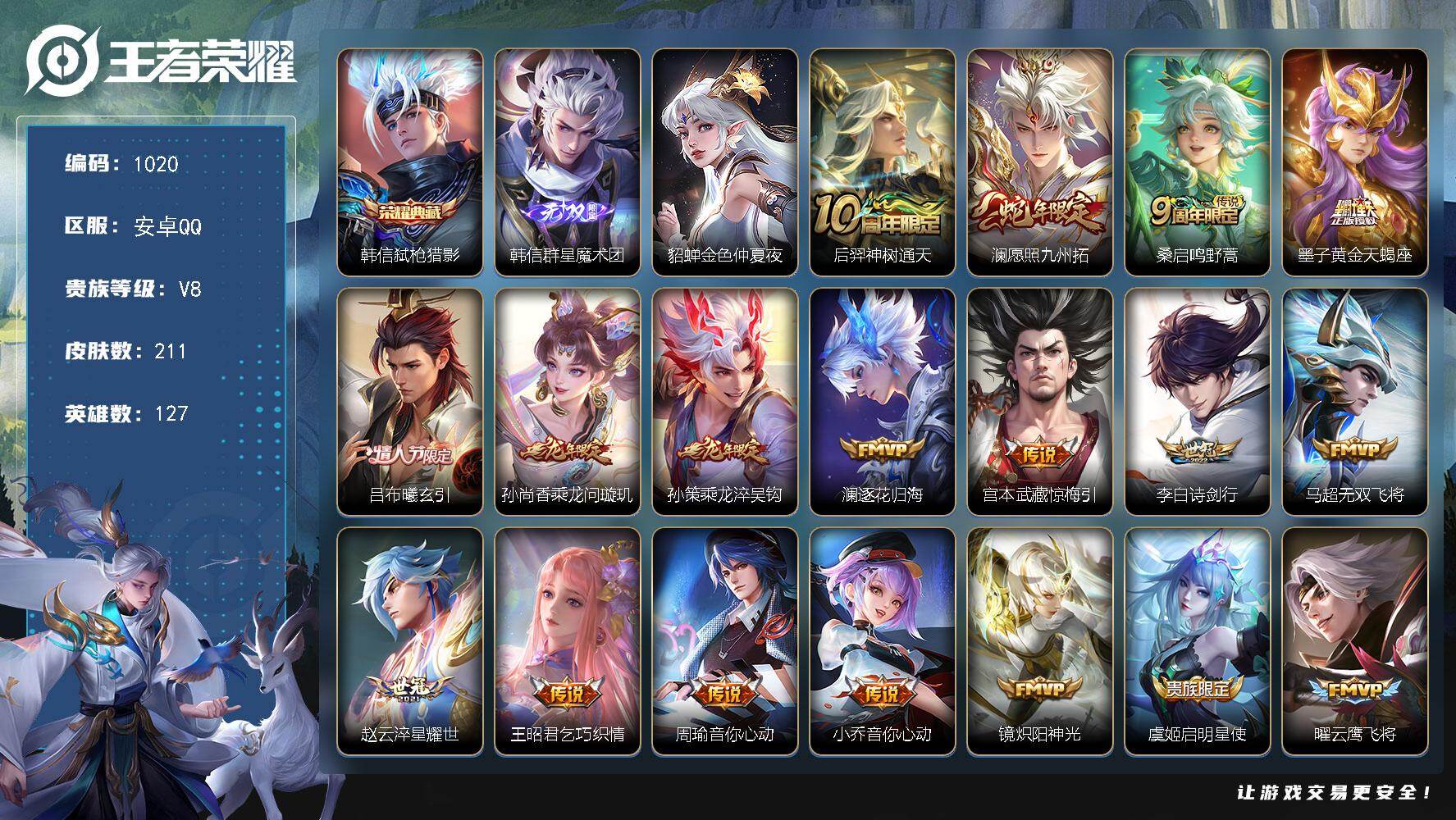 V8-最强王者段位-127英雄-211皮肤-1典藏皮肤-1无双-28传说