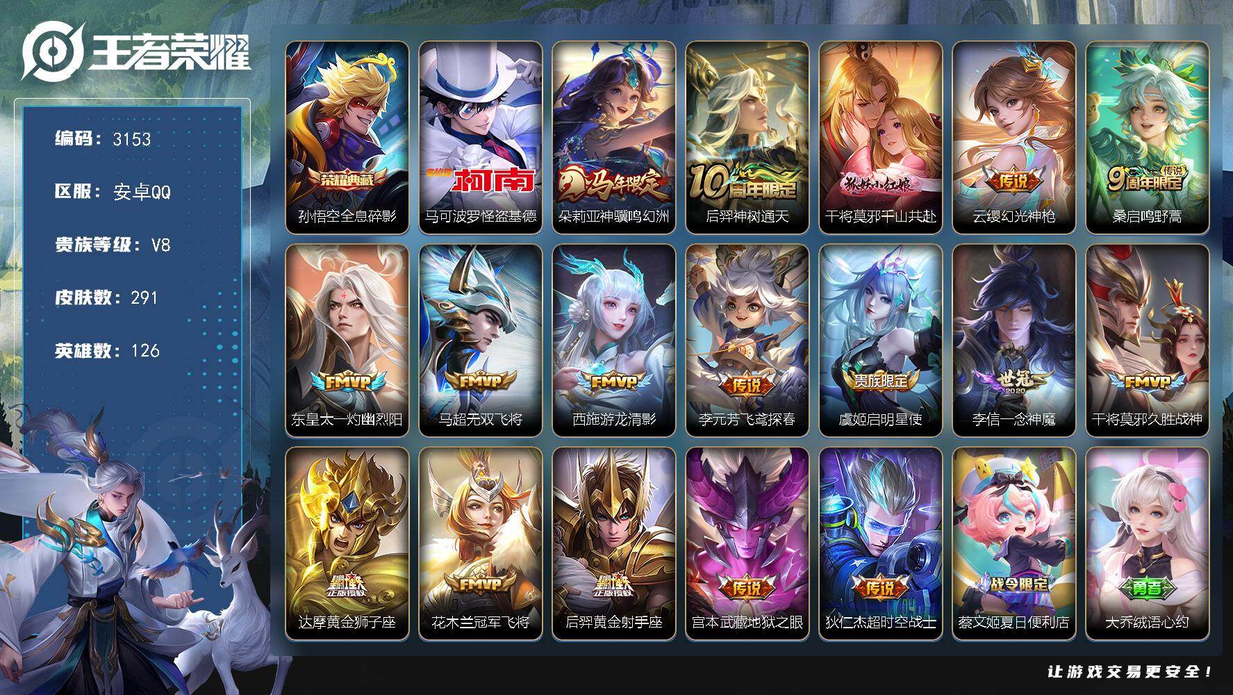 V8-最强王者段位-126英雄-291皮肤-1典藏皮肤