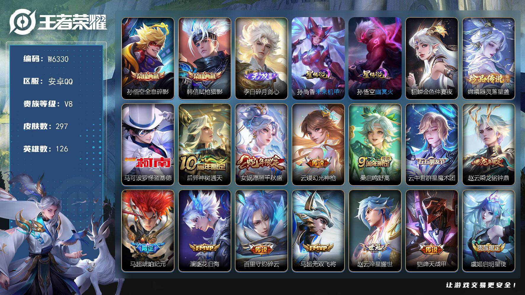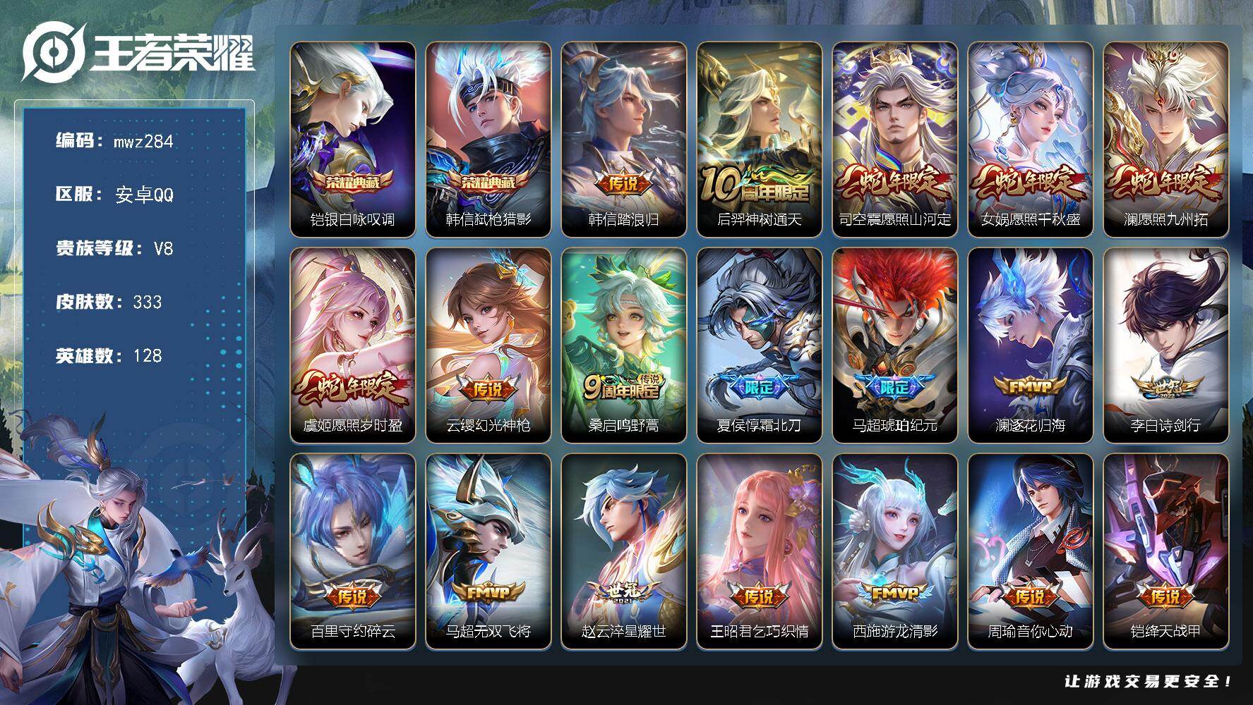 【mwz284】安卓Q-V8-最强王者段位-128英雄-333皮肤-2典藏皮肤