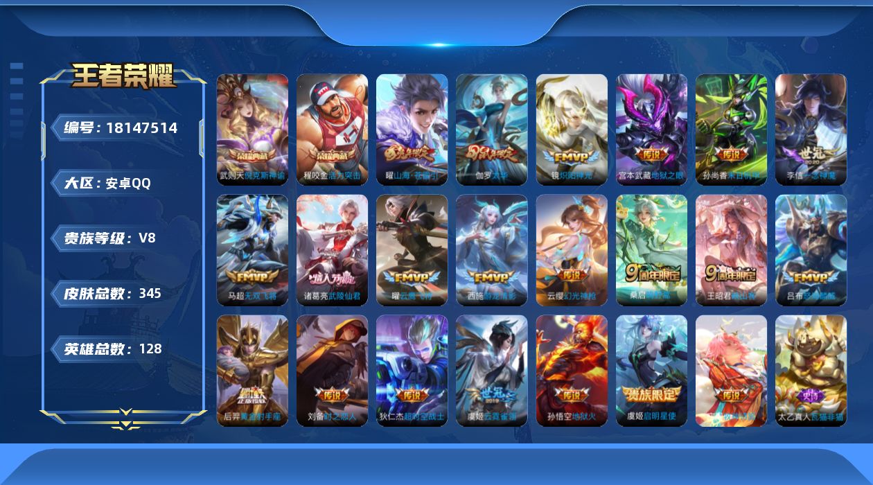 安卓Q-V8-最强王者段位-128英雄-345皮肤