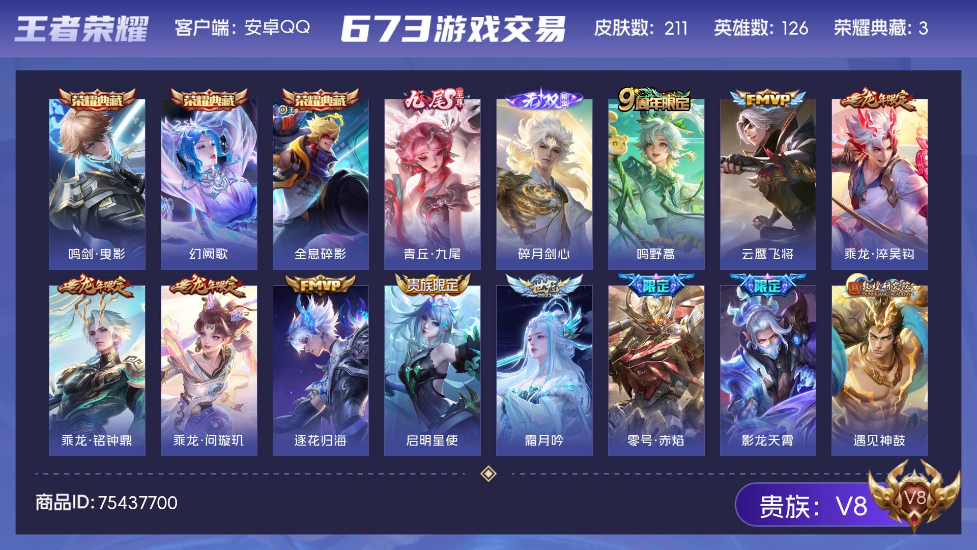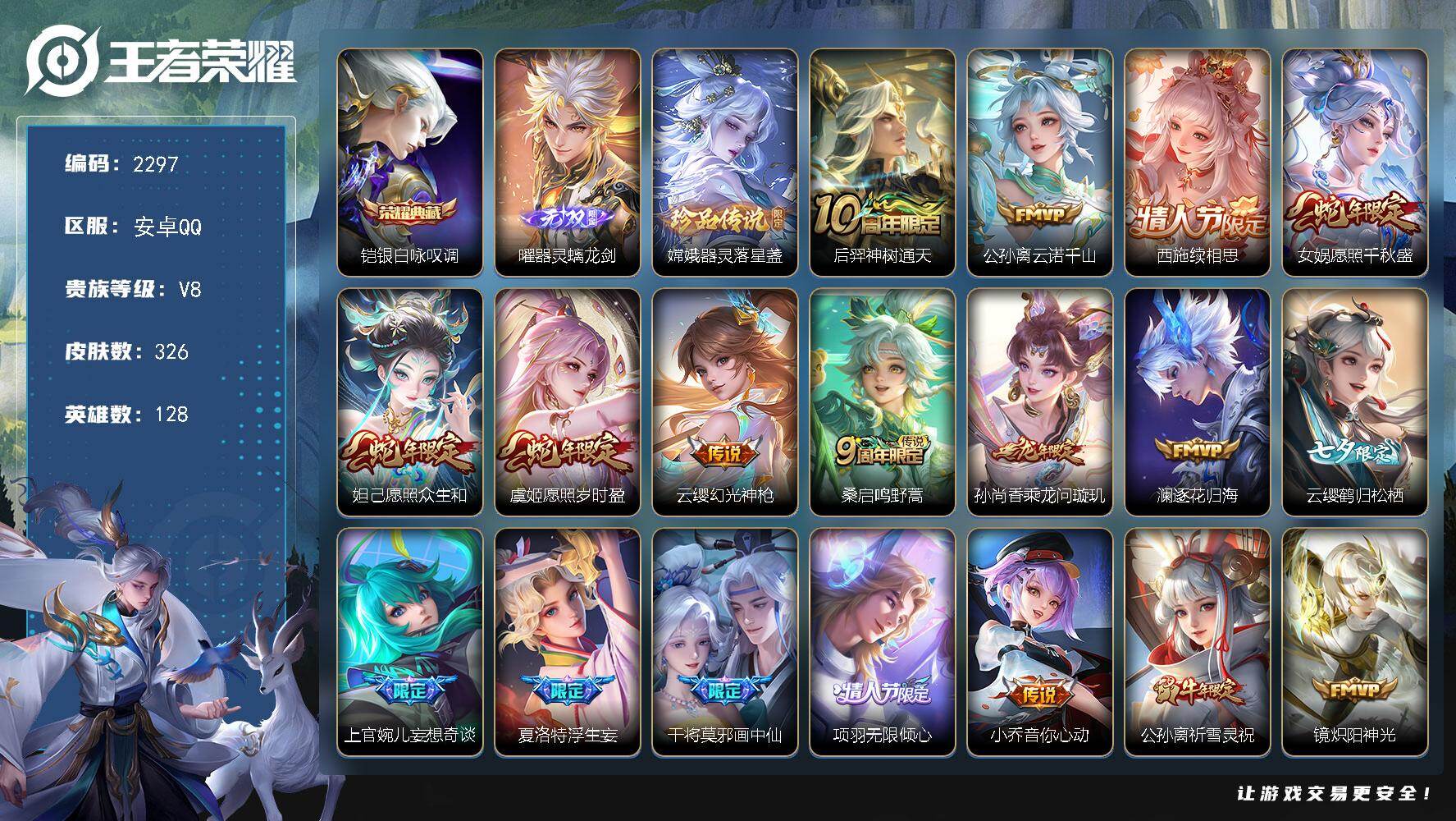 安卓Q-V8-至尊星耀IV段位-128英雄-326皮肤-1典藏皮肤-