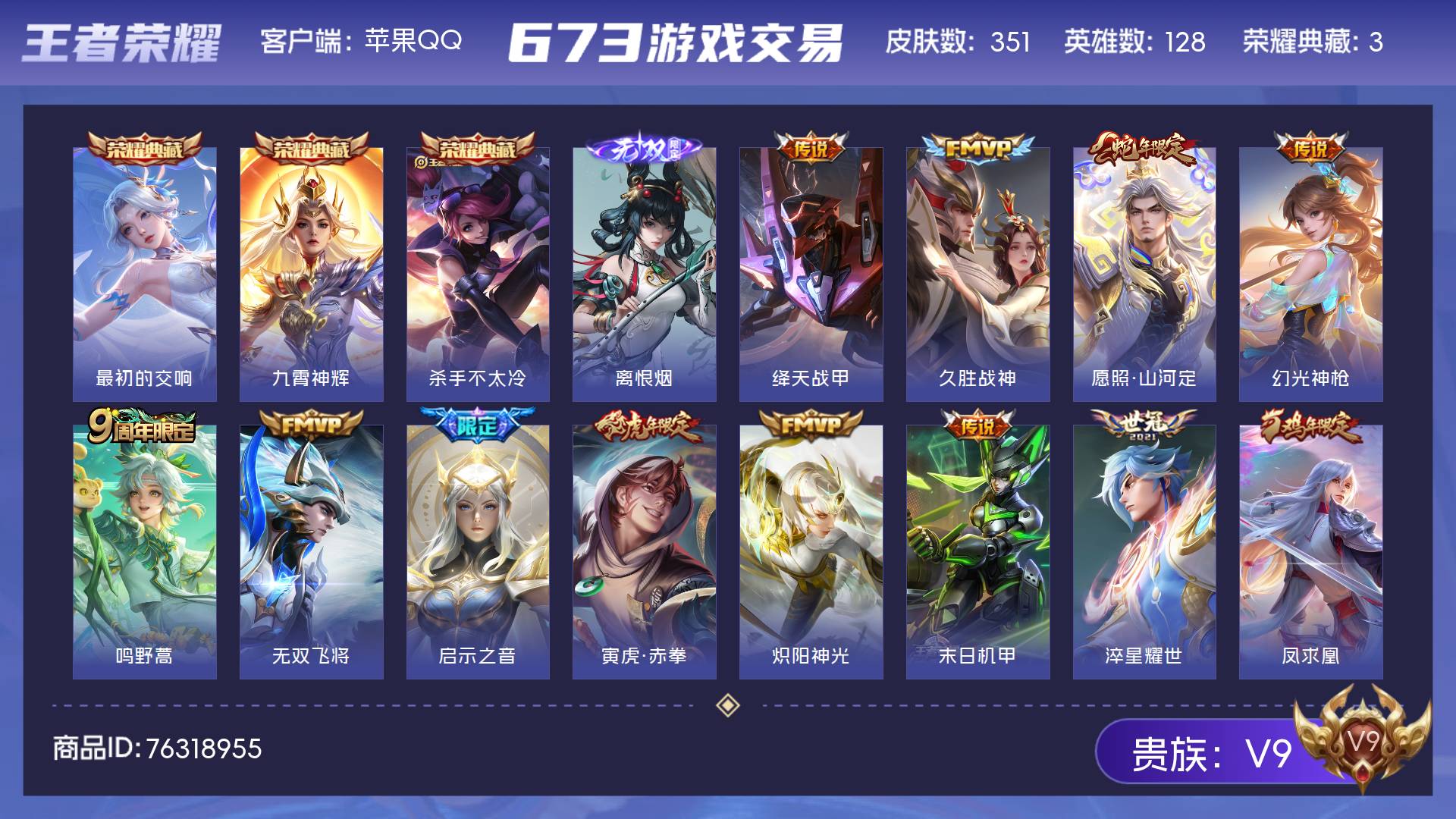 V9 皮肤351 英雄128 最强王者 荣耀典藏3 无双皮肤1 传说20