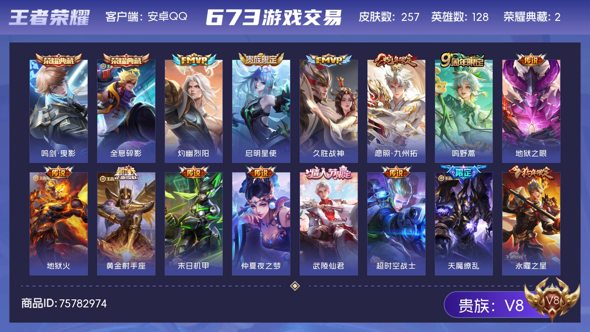 V8 皮肤257 英雄128 荣耀王者 荣耀典藏2 传说15 其他皮肤236