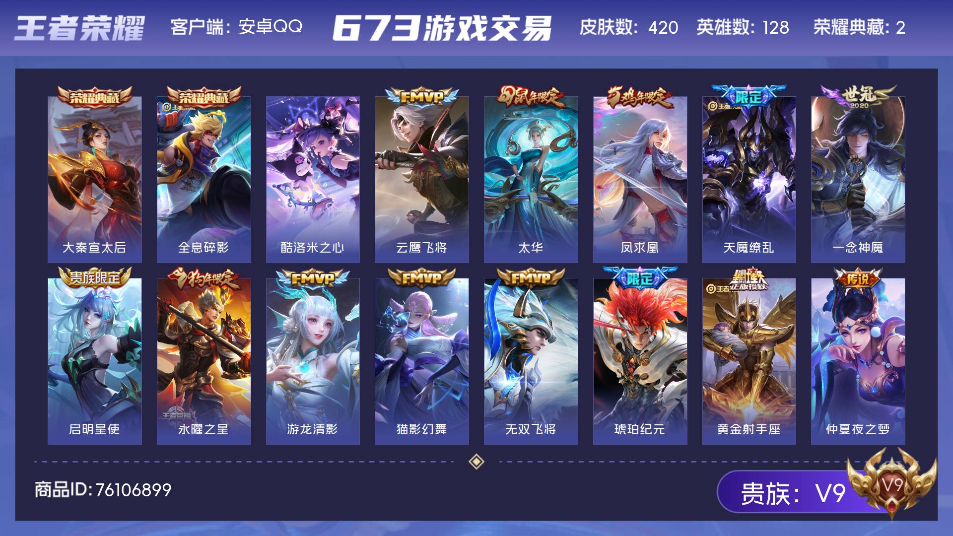 皮肤420 英雄128 最强王者 荣耀典藏2 珍品传说1 传说29 其他皮肤394-v9