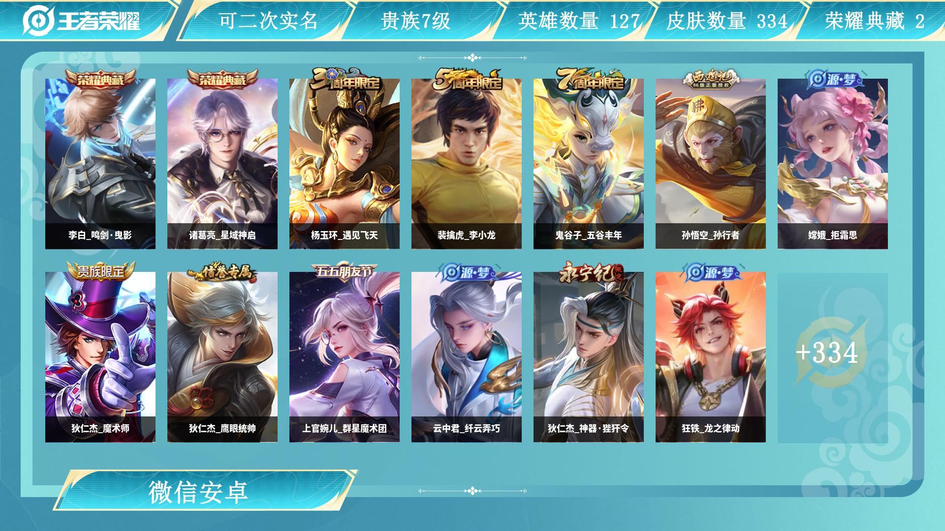 安卓微信-1典藏-15传说-357皮肤-127英雄-传奇王者-背包还有一颗荣耀水晶