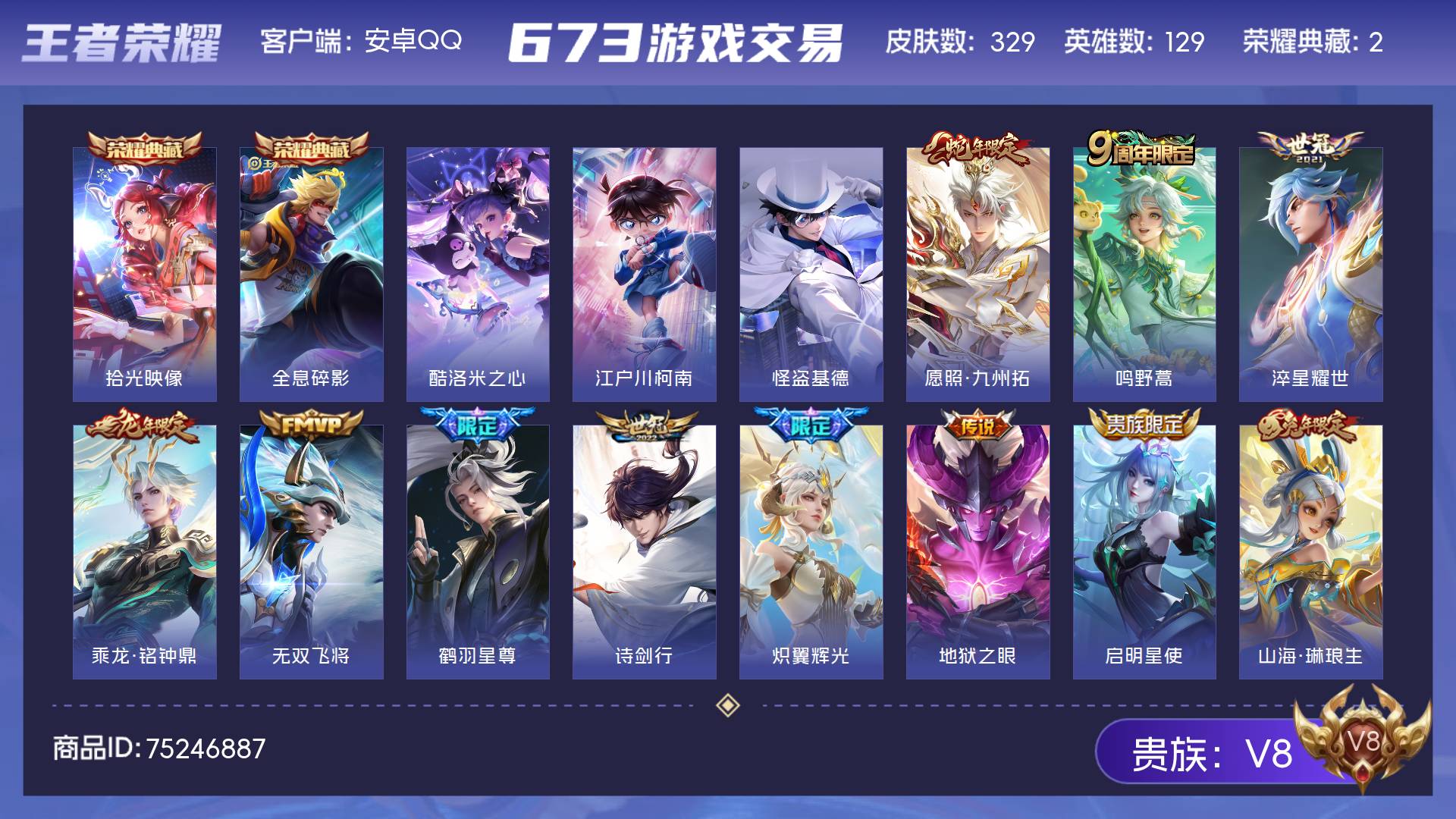 V8 皮肤329 英雄129 永恒钻石 荣耀典藏2 珍品传说3 传说17 其他皮肤312