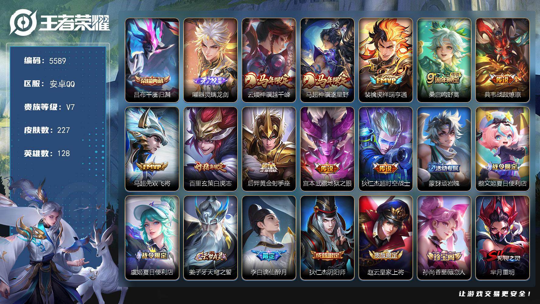 安卓Q区 V7 可二次 可转区 275皮 1典藏 2珍品 13传说