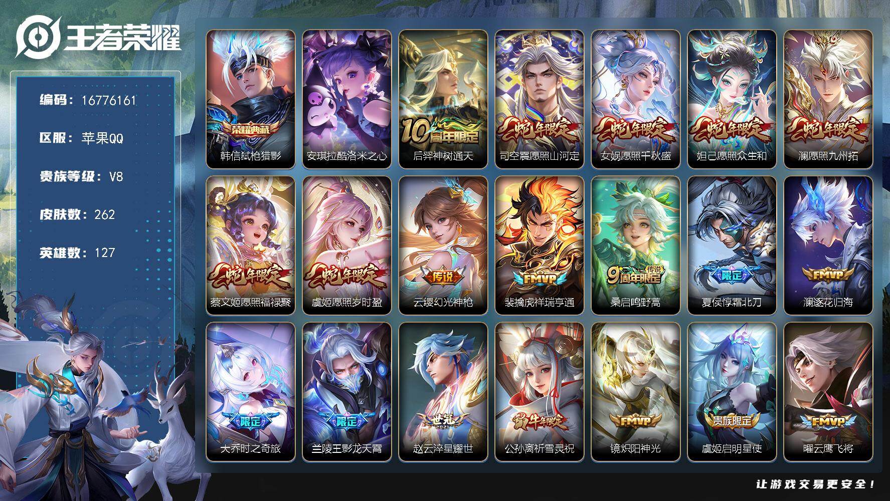 【16776161】苹果Q-V4-至尊星耀III段位-127英雄-262皮肤-