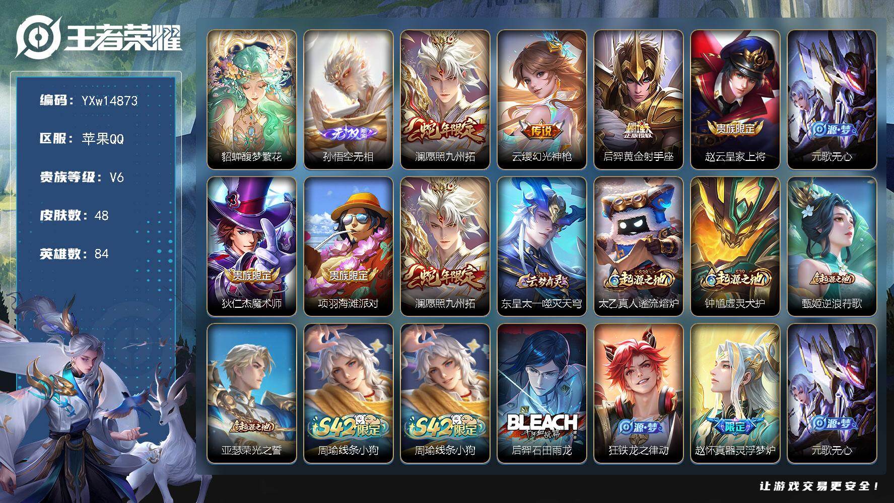 84英雄-48皮肤-1王者印记-60铭文-贵族积分1w