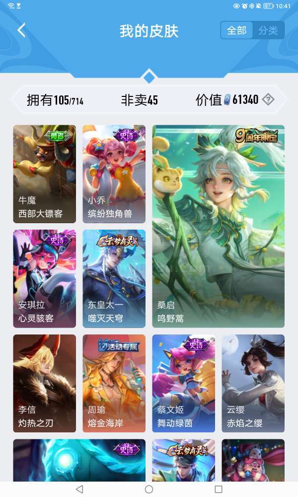 V5 皮肤81 英雄129 尊贵铂金 传说1 其他皮肤86