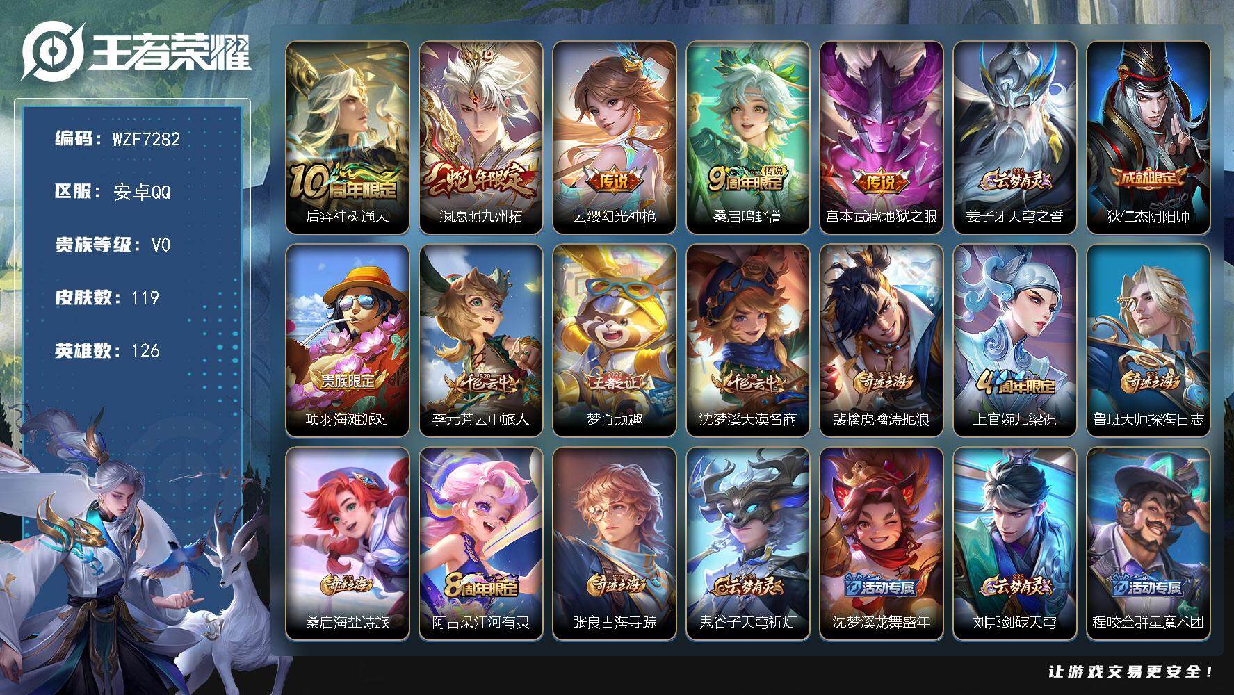 贵族0/皮肤119/传说5/史诗24/英雄126/