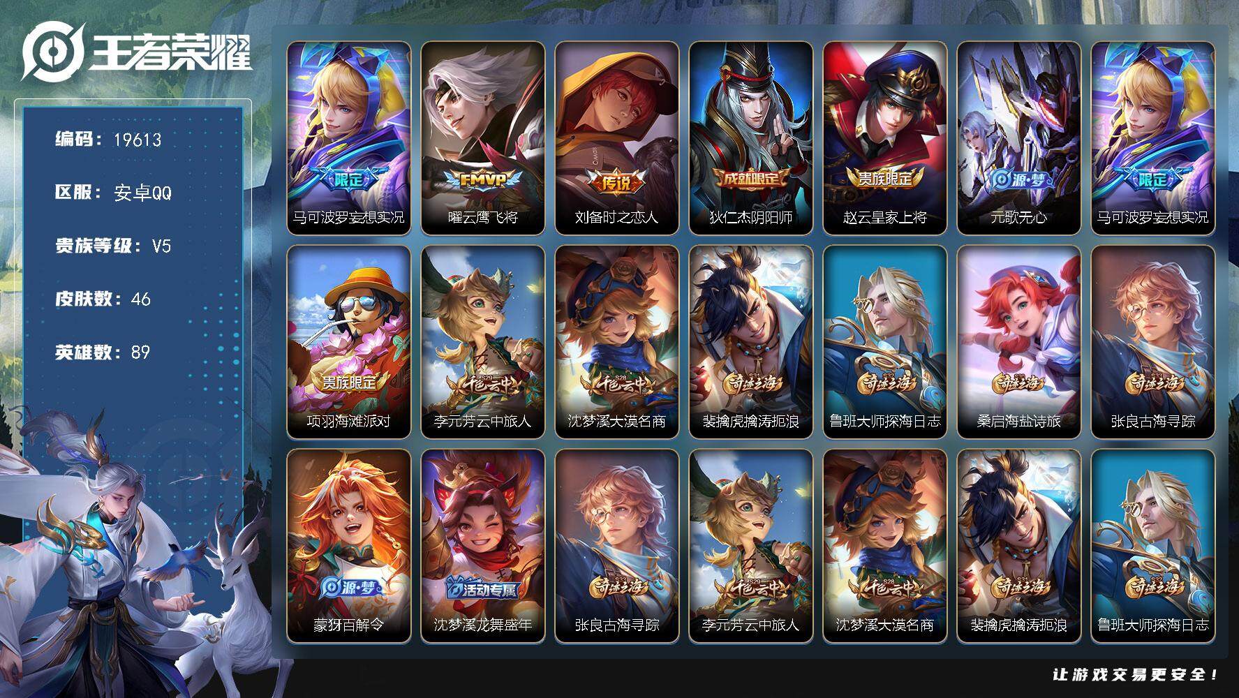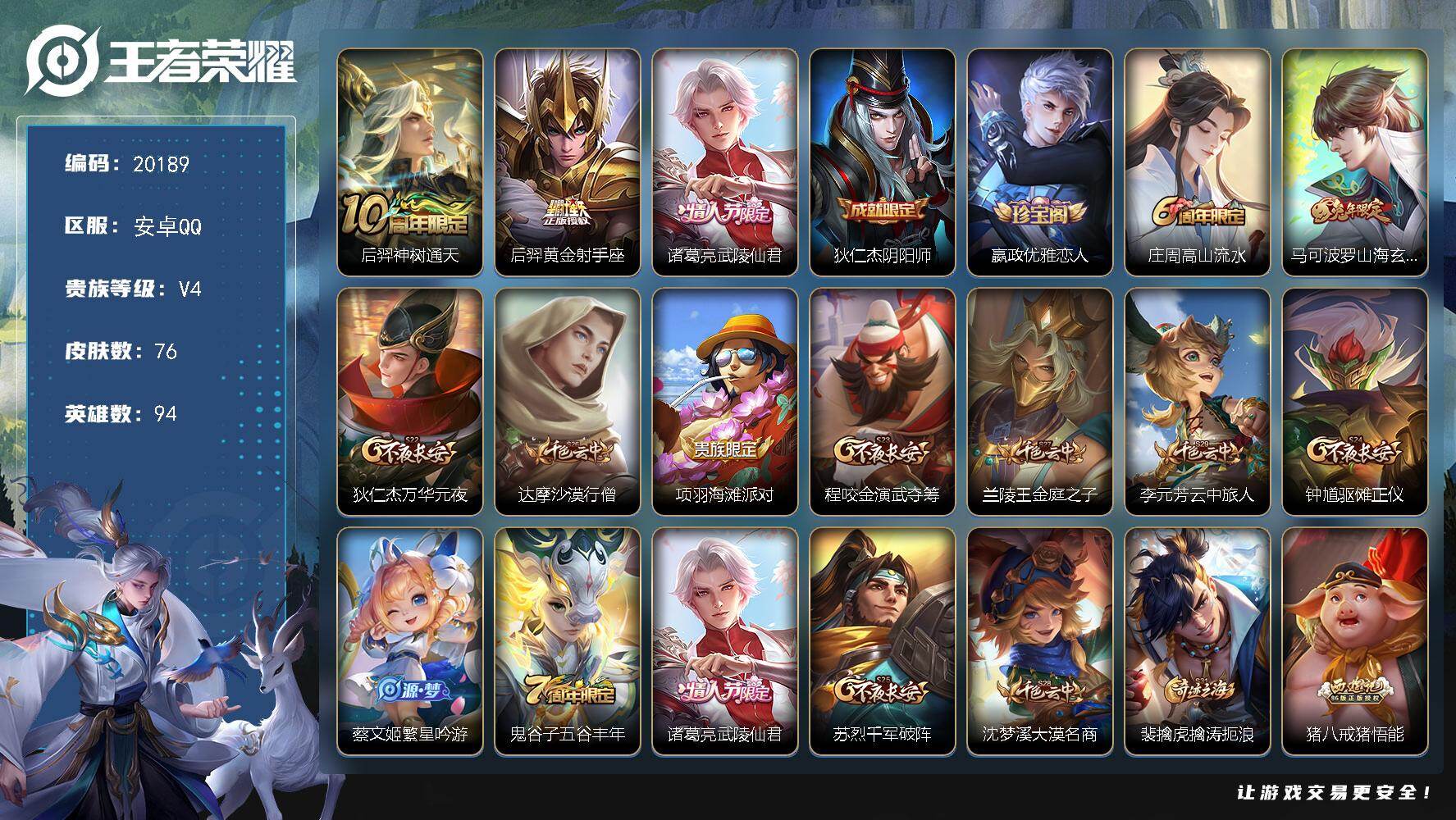 安卓Q-V4-最强王者段位-118英雄-85皮肤-1典藏皮肤-2传说-19史诗