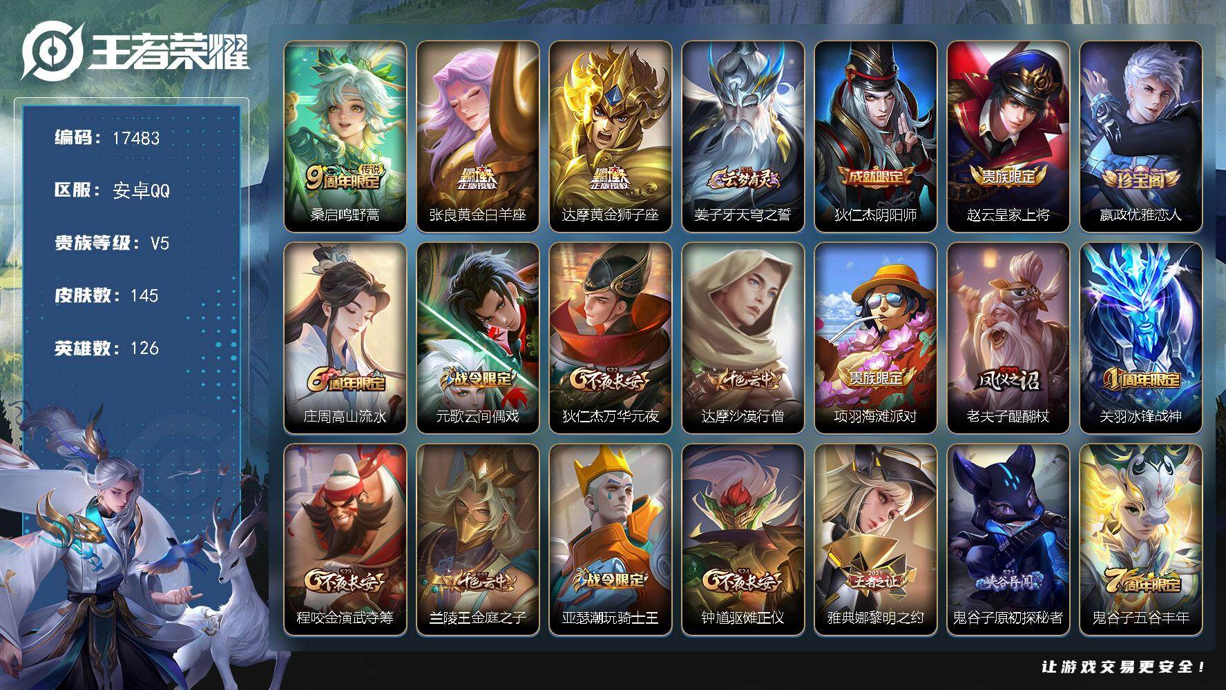安卓Q-V4-永恒钻石IV段位-107英雄-77皮肤-5传说-17史诗【传说