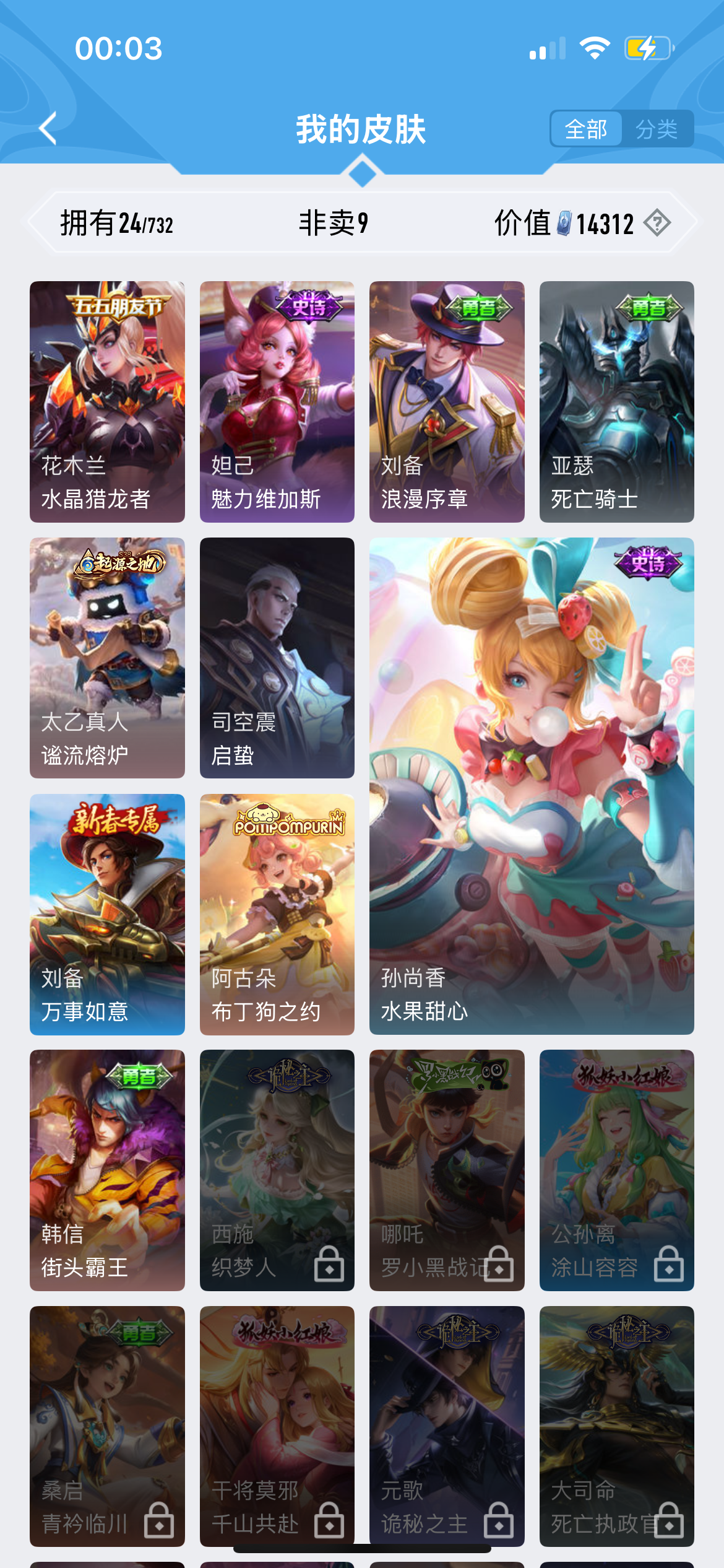 皮肤16 英雄31 永恒钻石 传说3 其他皮肤6-都来看,都来瞧!!!清仓大甩卖,清仓大甩卖。神秘李白皮肤一张带走。