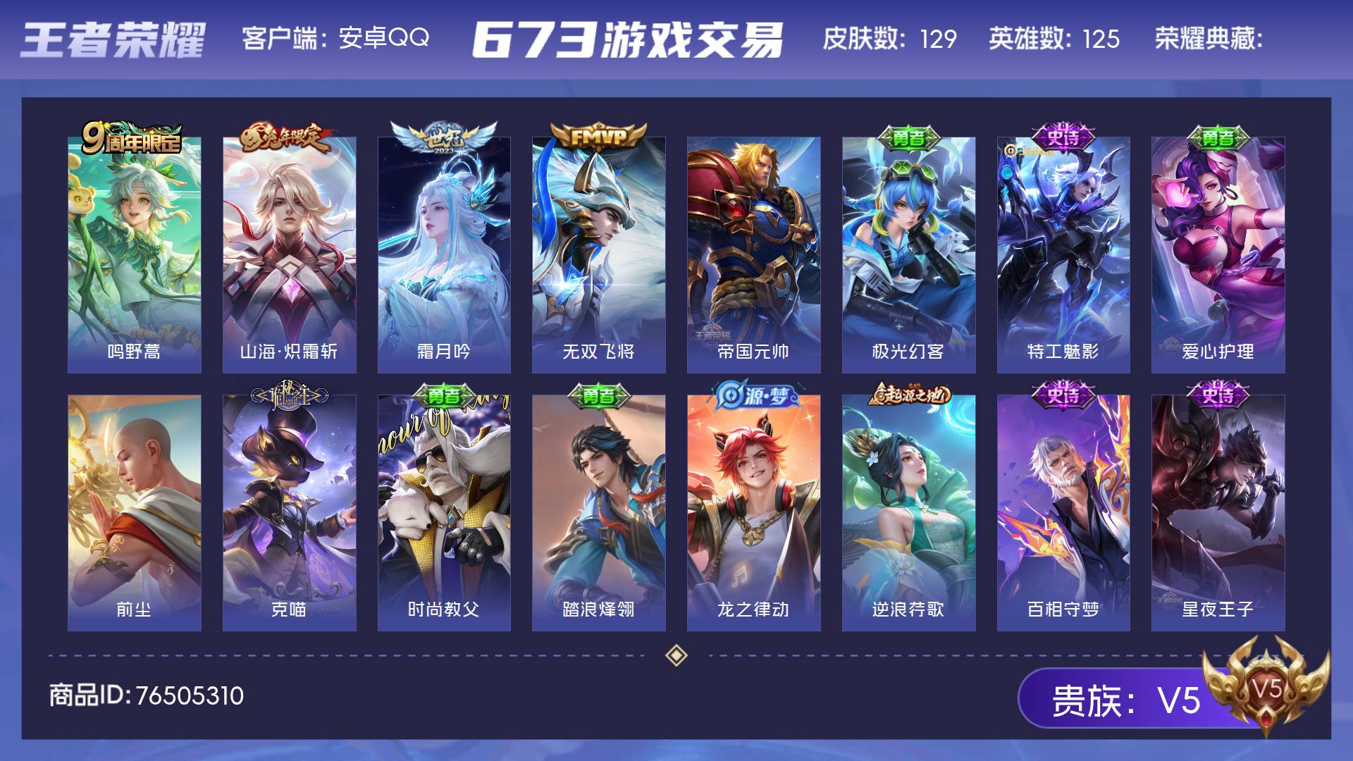 V5 皮肤129 英雄125 尊贵铂金 星传说1 传说4