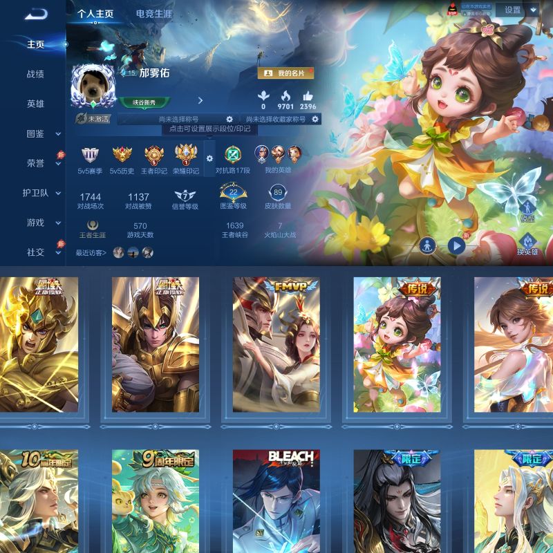 实名: 可修改 贵族等级: V4 英雄数: 125 皮肤数: 121 传说皮: