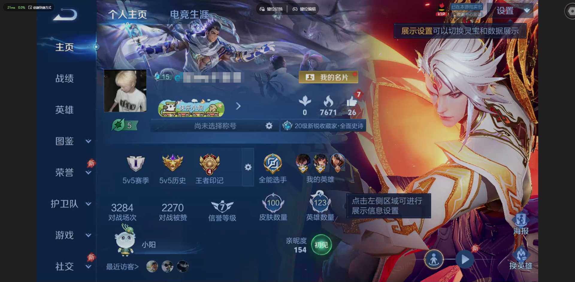 【王者荣耀连体和平精英】贵族等级: V3 英雄数: 123 皮肤数: 100